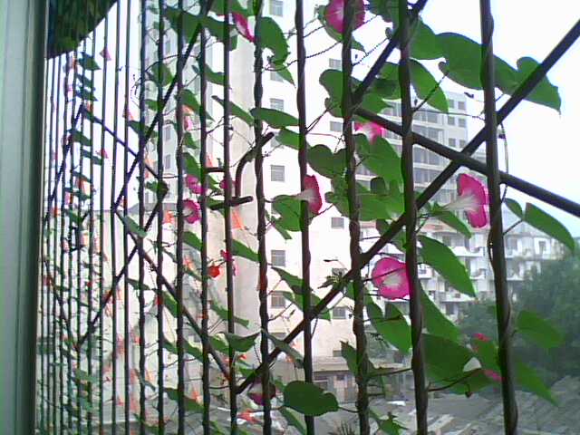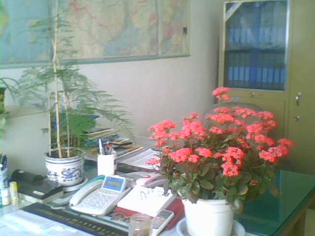 在建筑业协会时我办公桌和窗外种植的花花草草