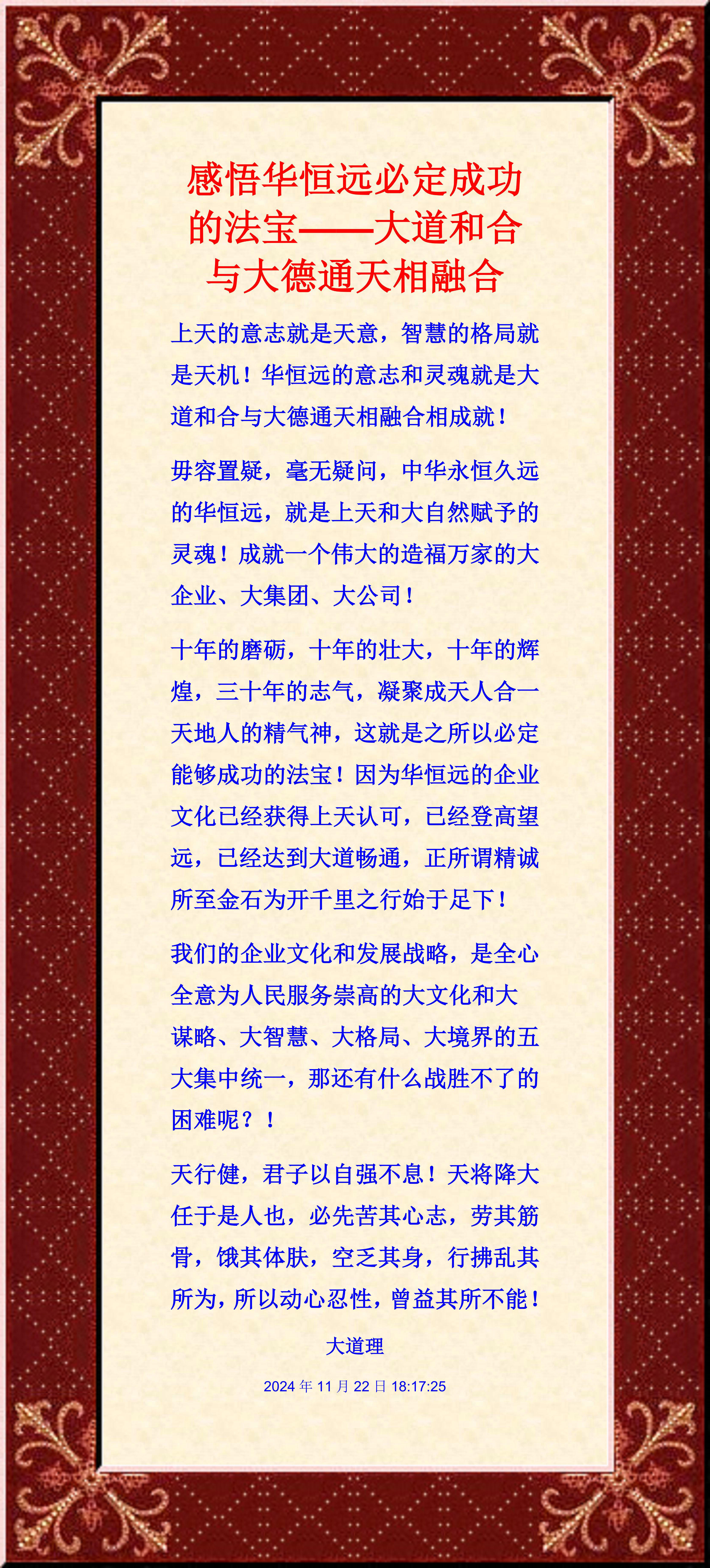 上天的意志就是天意,智慧的格局就是天机!太阳成tyc7111cc官网的意志和灵魂就是大道和合与大德通天相融合相成就!