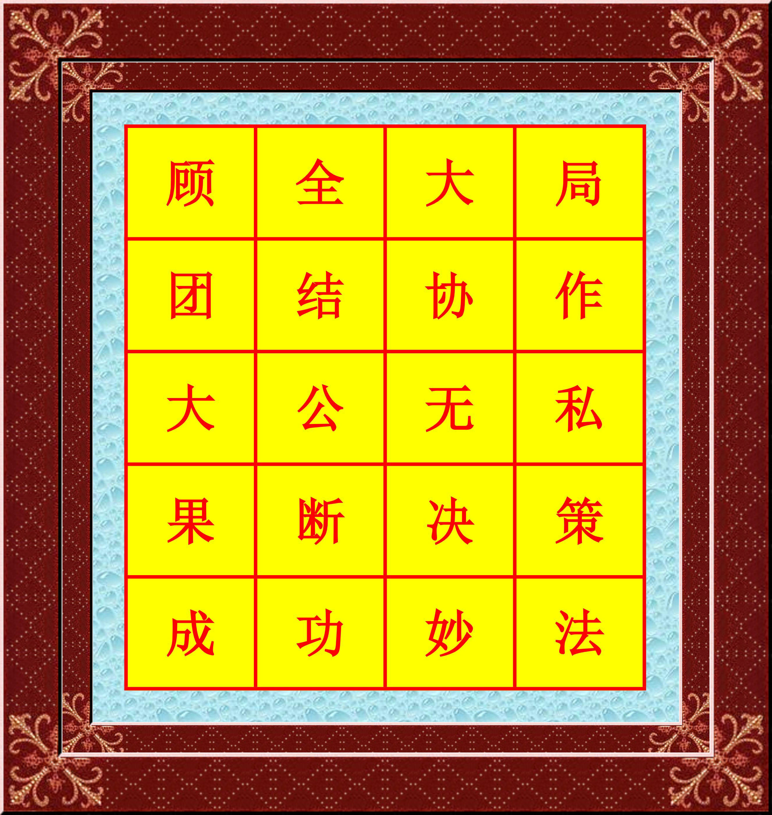 哎呀,上一次让我把世界未来发展趋势用20字概括,得到的回应是满分!这次怎么说?让我想一想。嗷,应该是:顾全大局,团结协作,大公无私,果断决策,成功妙法!是不是啊?!