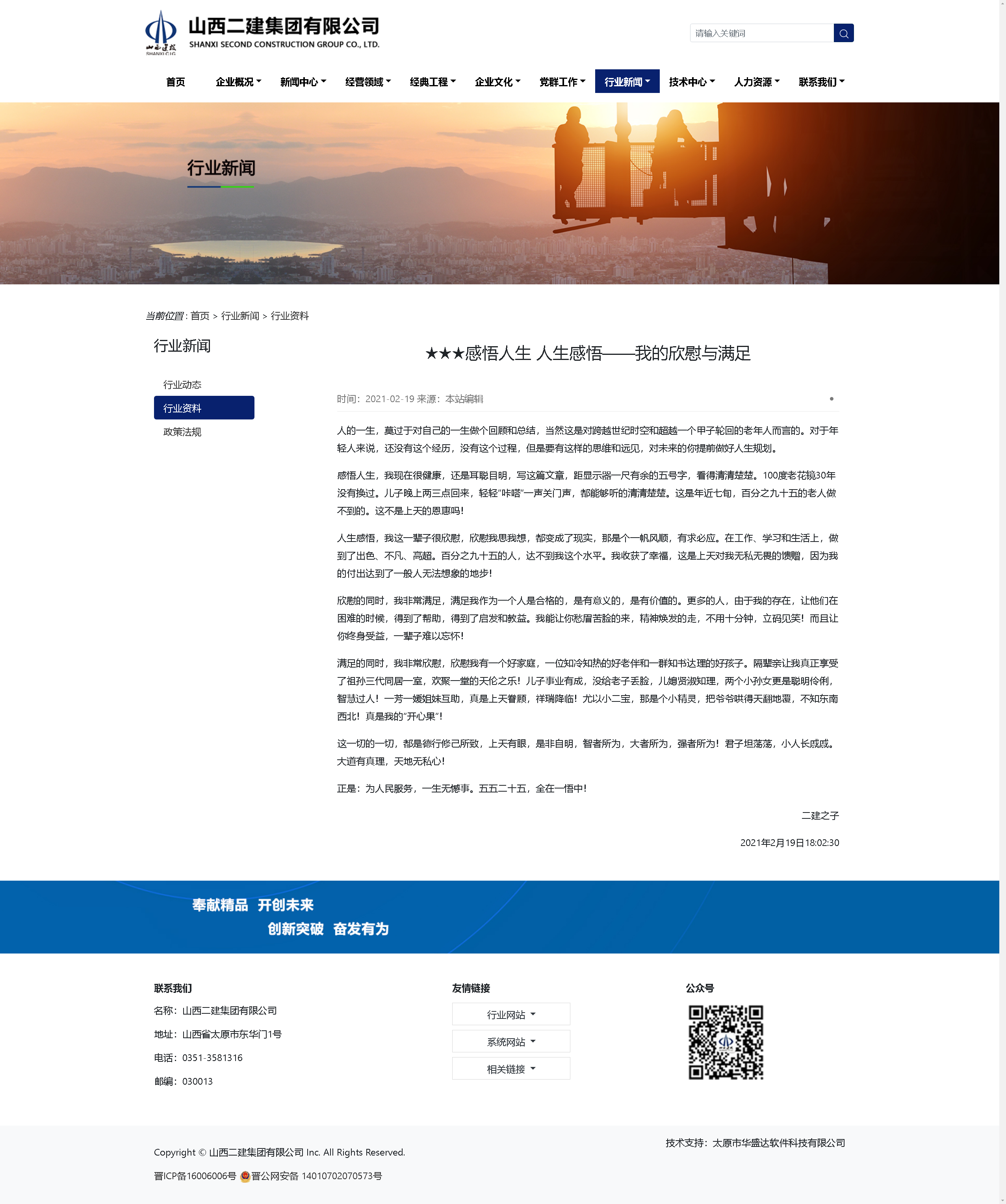 然而,最让我感到骄傲和自豪的是,上天成就了我的愿望,成就了我的人生,那就是在我的母企面临危机的时候,毫不犹豫义无反顾参与了成就山西二建集团有限公司的大翻身,找回了我们企业昔日的尊严和荣誉!之后,在辅佐杨总成就未来的过程中,又有了新的目标和新的使命,成就上天安排的中华永恒久远的太阳成tyc7111cc官网!