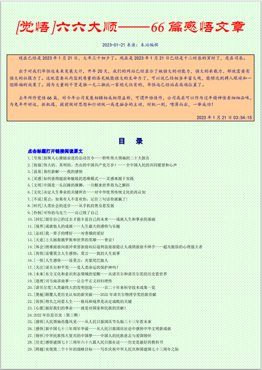 如果能够再把2023年这66篇感悟文章融会贯通,一个焕然一新的思维境界就会成就你一个更加完整的自我,那是由小我升华到大我的超越,一切事物都在你的预料之中,并且能够按照你的意愿和愿望成为现实,大彻大悟的先知先觉随影随形——大道和合大德通天的包容无私专一的成功者!