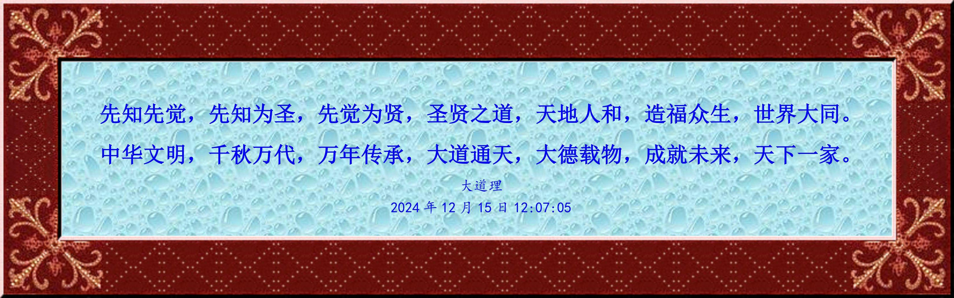 中华文明,千秋万代,万年传承,大道通天,大德载物,成就未来,天下一家。
