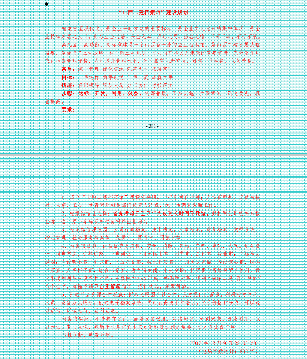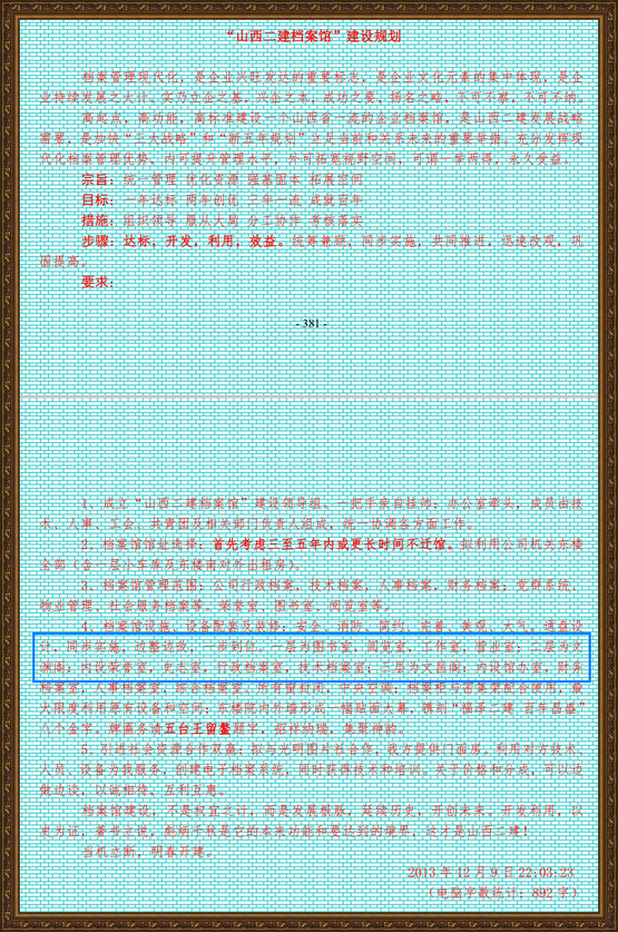 档案馆建设,不是权宜之计,而是发展根脉,延续历史,开创未来。开发利用,以史为证,著书立说,彪炳千秋是它的本来功能和要达到的境界,这才是山西二建!