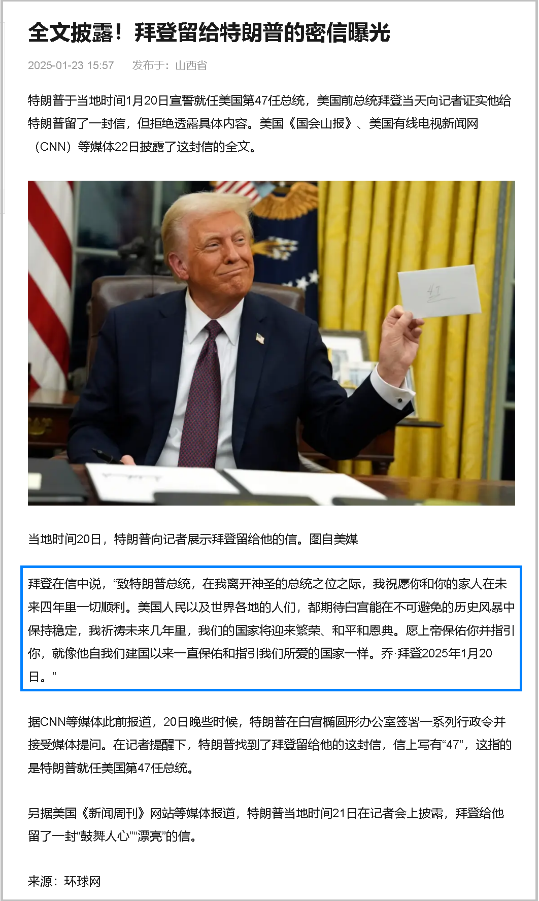 拜登留给特朗普的密信曝光