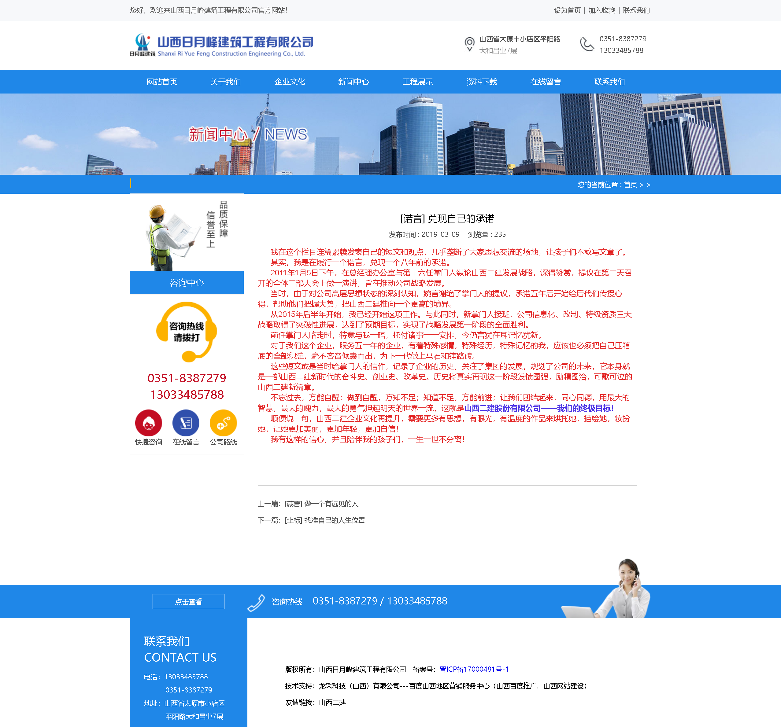 顺便说一句,山西二建企业文化再提升,需要更多有思想,有眼光,有温度的作品来烘托她,描绘她,妆扮她,让她更加美丽,更加年轻,更加自信!