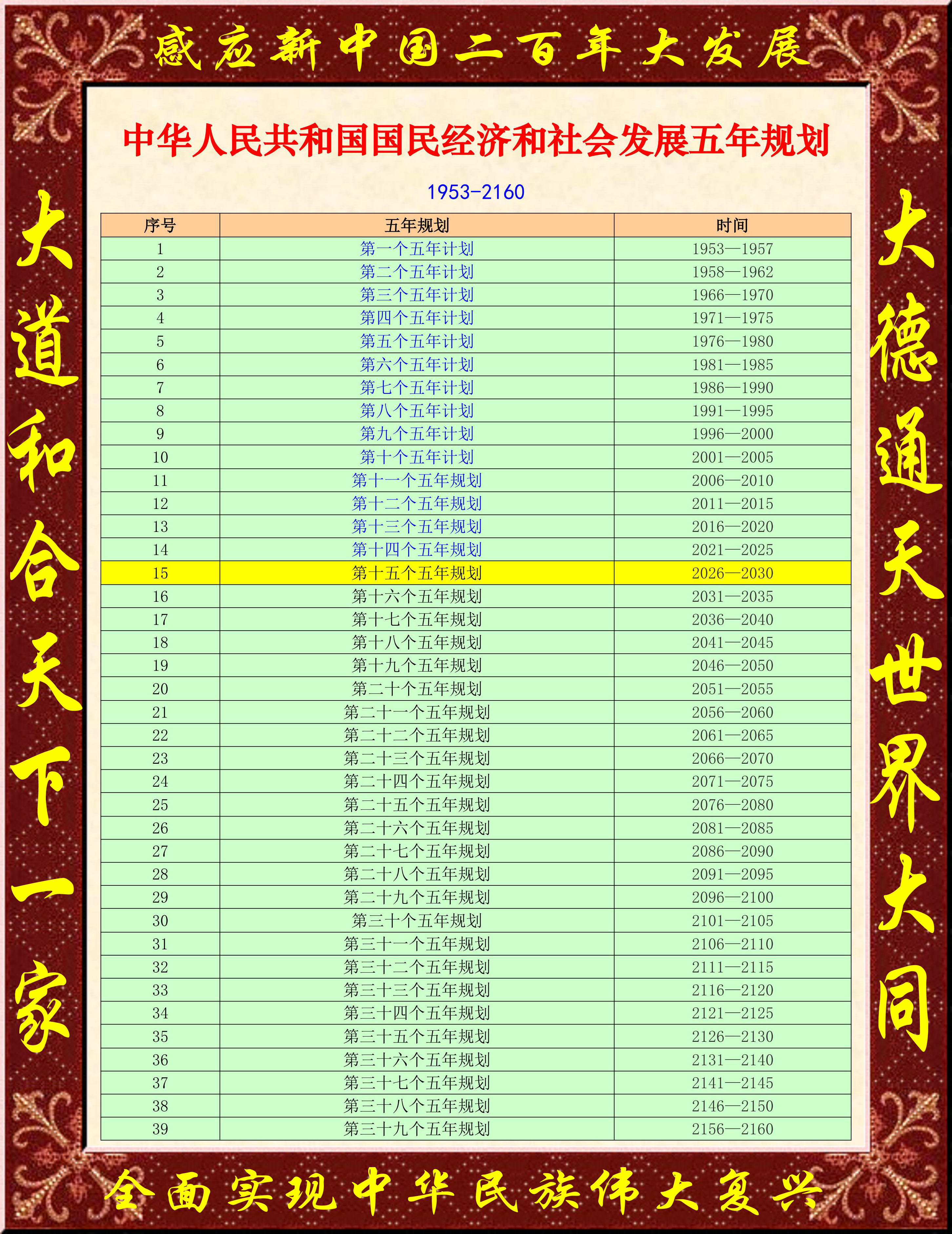中国的未来在哪里?在这里,在今后若干个中国式现代化发展战略五年规划目标里,在中华民族伟大复兴的发愤图强里,在未来一百多年的自强不息拼搏奋斗里!——那就是大道和合大德通天高度融合的行大道天下一家世界大同!