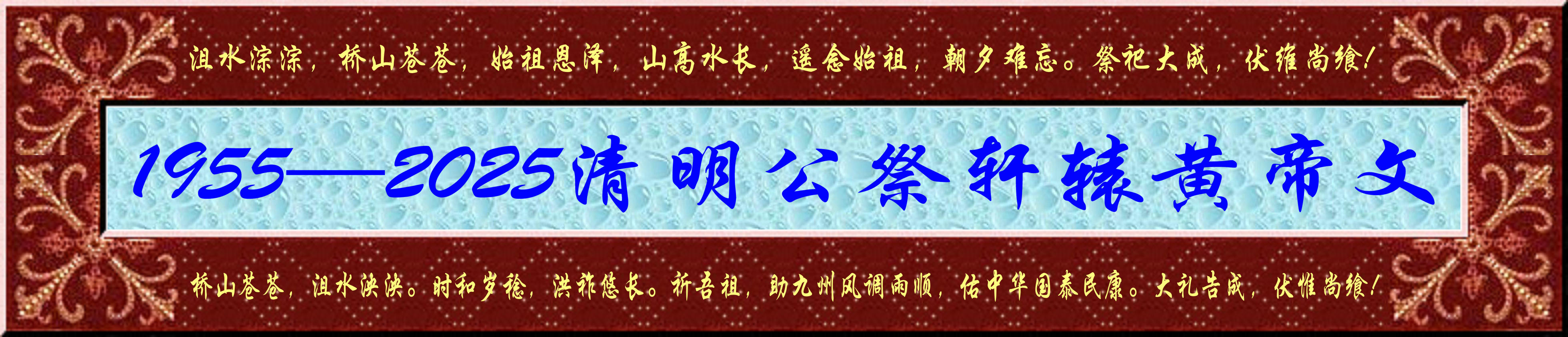 吾祖赫赫,伟业煌煌。广施仁德,福民农桑;肇启文明,光被遐荒。丁酉清明,礼乐馨香,四海华夏昆裔,聚首桥山之阳,共祭轩辕初祖,祈愿九州隆昌!