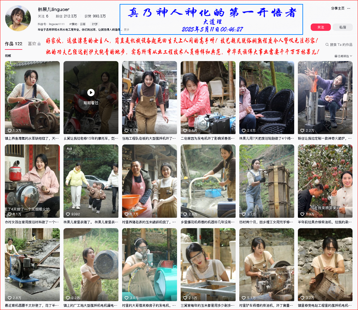 她的功夫已经达到炉火纯青的地步,实为所有从业工程技术人员榜样和典范,中华民族伟大事业需要千千万万林果儿!