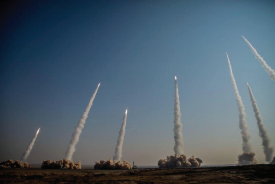 伊朗导弹齐射画面。由于当前以色列的空中优势,如何在长期对峙中维持这样的画面,也是摆在伊朗面前的一大课题。