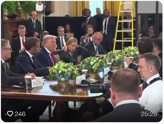 特朗普总统详细说明了他与欧洲领导人的讨论内容:“他们想重新领导他们的国家。他们对此的关心远远超过我们……会有一种形式的安全保障。这不能是北约,因为这永远不会发生。”