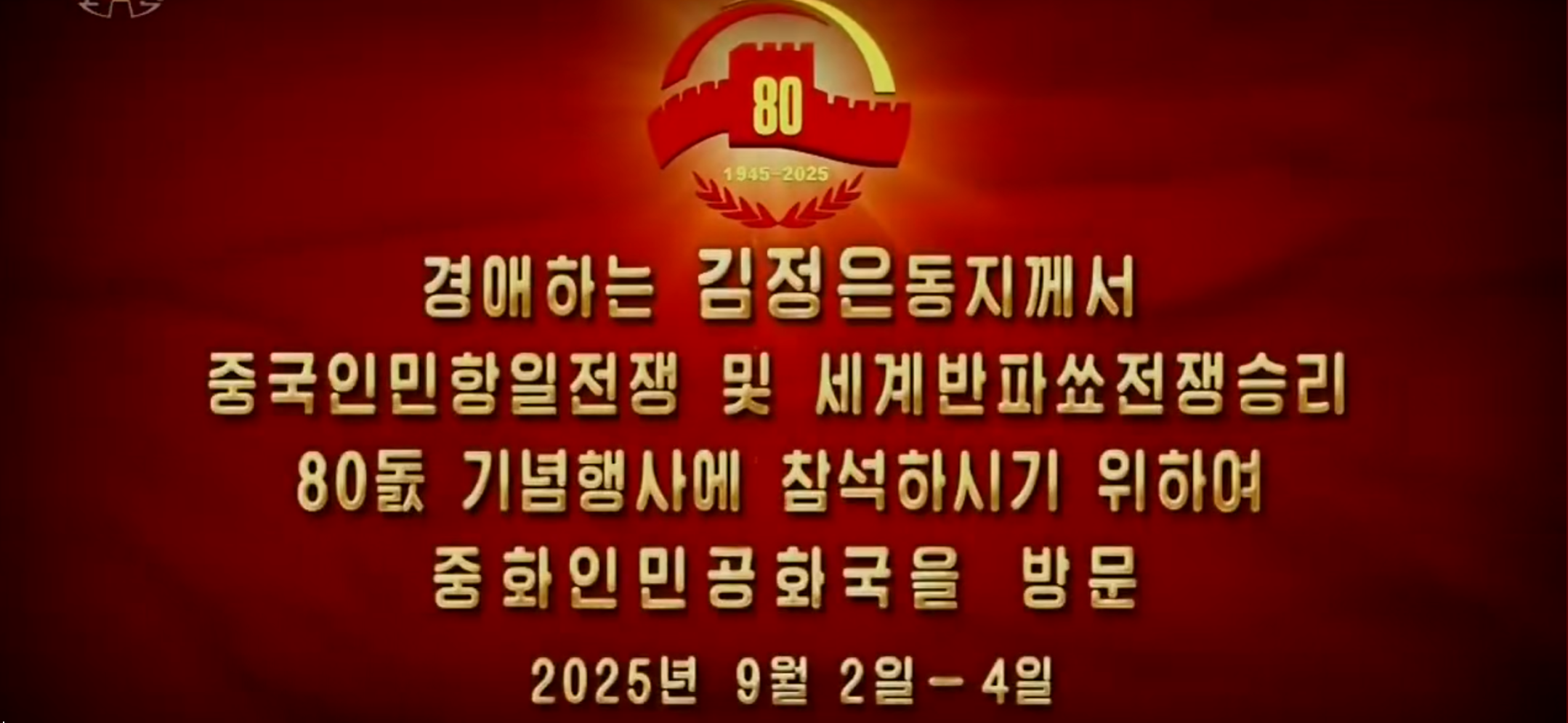 1 敬爱的 金正恩同志为了出席中国人民抗日战争及世界反法西斯战争胜利80周年纪念活动,您将访问中华人民共和国 [2025.08.28.]
