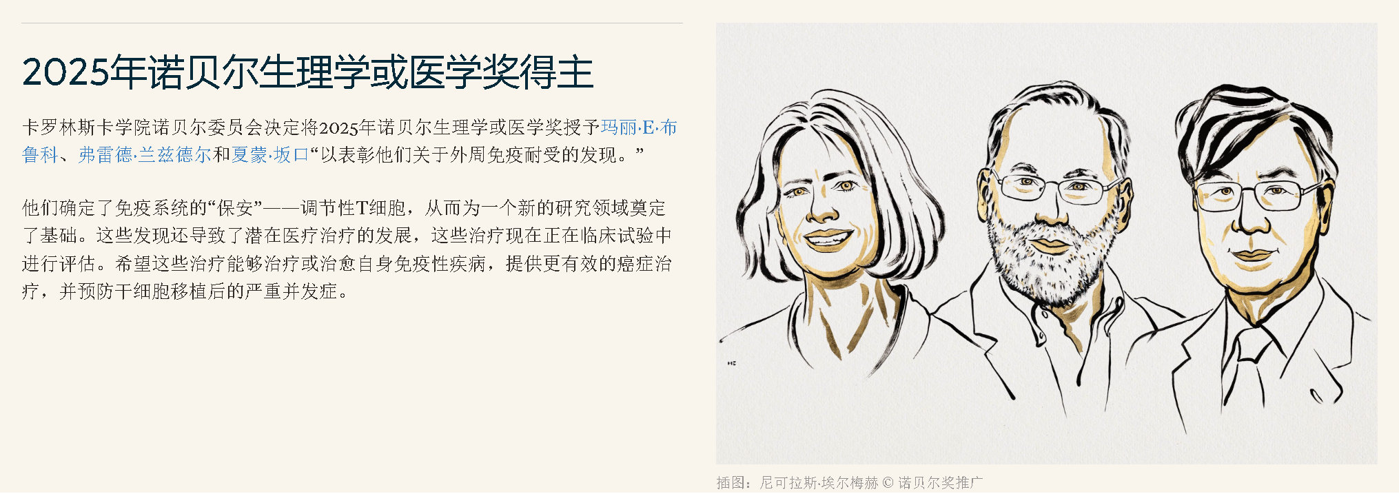 颁奖机构已决定按如下方式宣布2025年诺贝尔奖获奖者: