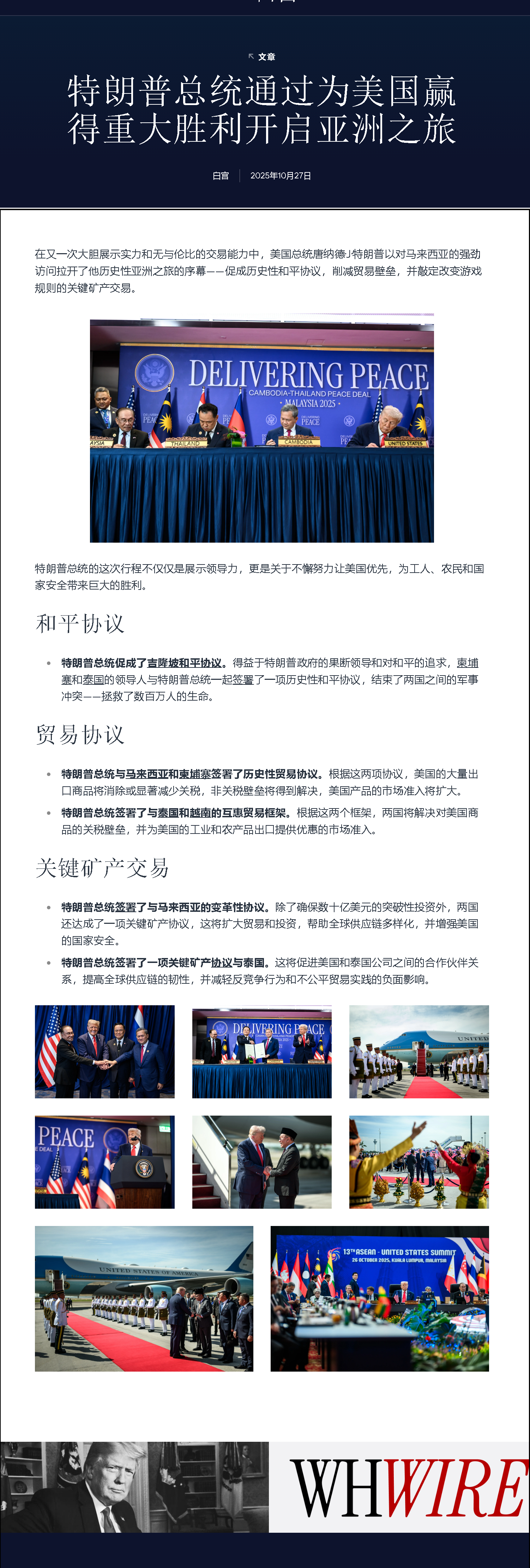 美国总统特朗普亲自出面,在吉隆坡与马来西亚、泰国和柬埔寨三国,签署了一系列贸易协议,把美国货强销不少。