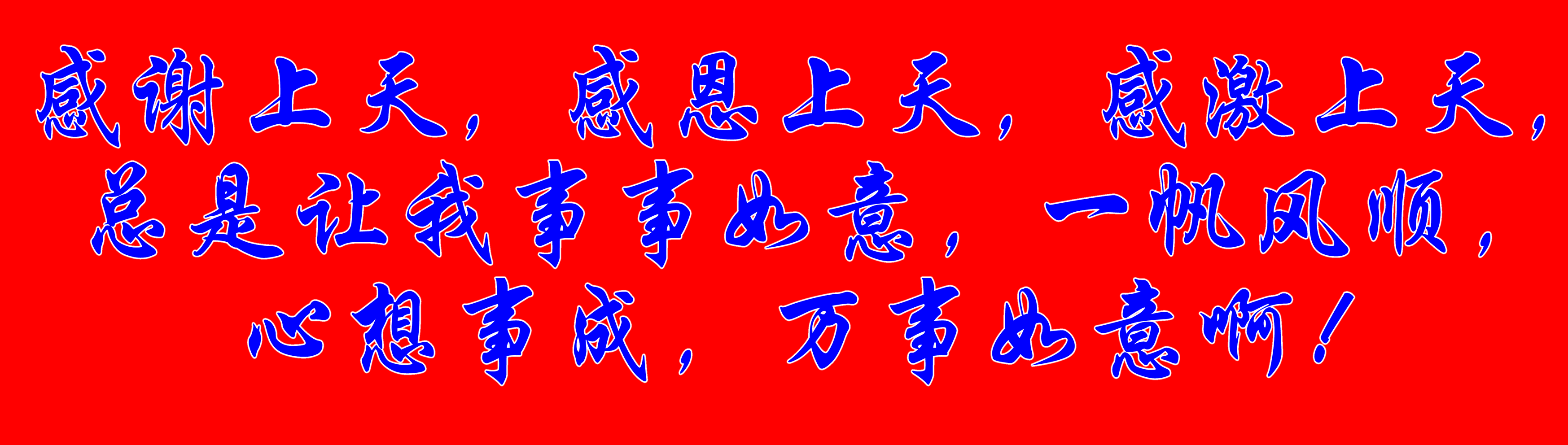 感谢上天,感恩上天,感激上天,总是让我事事如意,一帆风顺,心想事成,万事如意啊!
