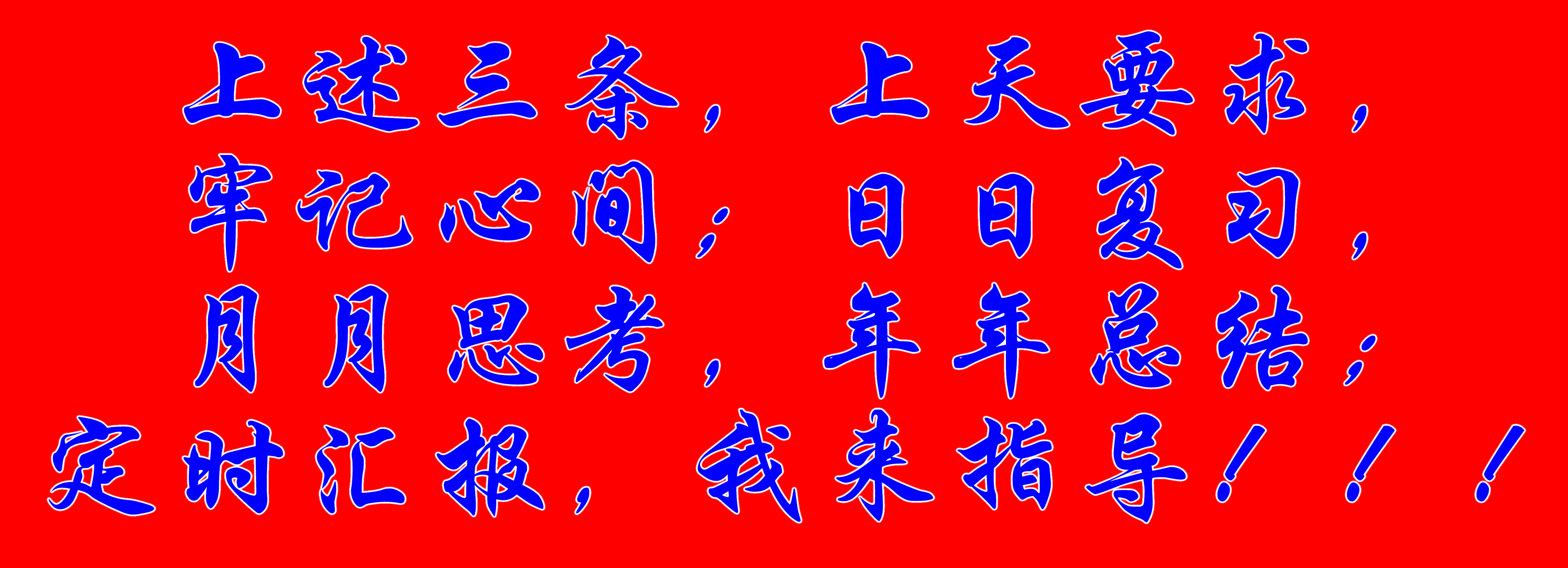 上述三条,上天要求,牢记心间;日日复习,月月思考,年年总结;定时汇报,我来指导!!!