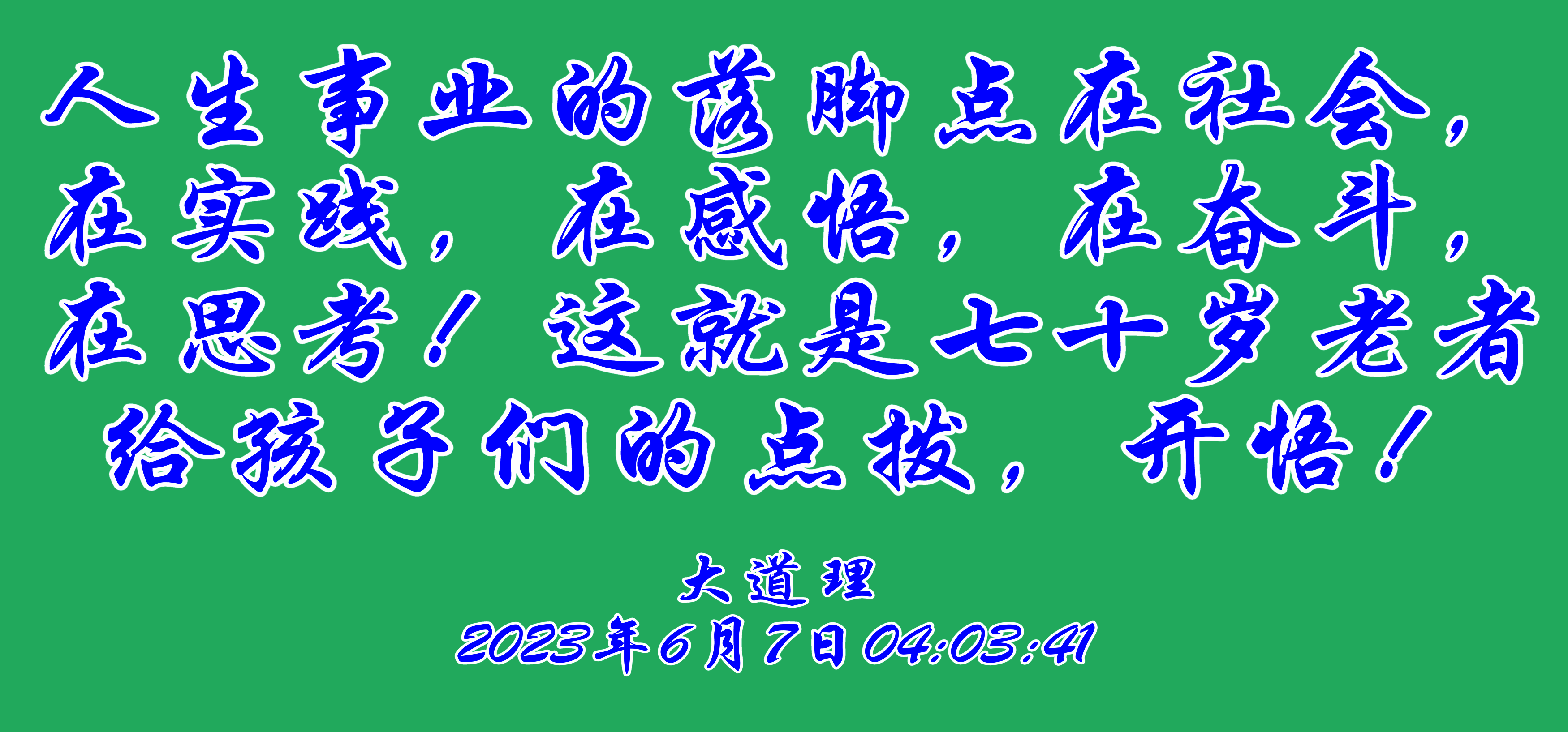 人生事业的落脚点在社会,在实践,在感悟,在奋斗,在思考!这就是七十岁老者给孩子们的点拨,开悟!