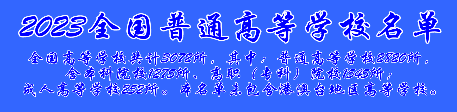 教育部昨天发布了2023年全国高等学校名单,根据名单我编辑了全国各地区高等学校分布一览表。