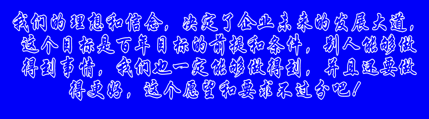 我们的理想和信念,决定了企业未来的发展大道,这个目标是百年目标的前提和条件,别人能够做得到事情,我们也一定能够做得到,并且还要做得更好,这个愿望和要求不过分吧!