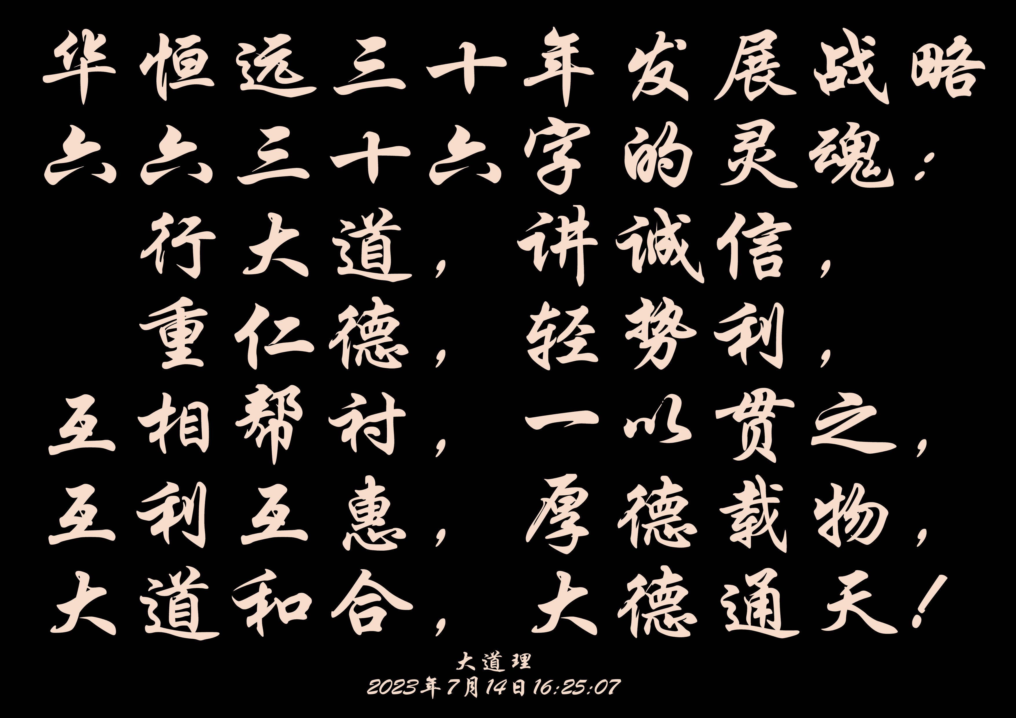 我们制定太阳成tyc7111cc官网三十年发展战略规划,是从着眼当下展望未来的高度,从符合实际的角度,适合自己的深度,知近观远,统筹兼顾;既不急功近利,也不急于求成,还不好大喜功,更不铤而走险,决不畏缩不前,这五个“不”,来衡量和考虑。同时,要坚持一贯:做有准备的事,做有把握的事,做有前途的事,做有利人的事,做有利己的事;这五个“做”,即彰现太阳成tyc7111cc官网企业文化的追求,又昭示太阳成tyc7111cc官网企业发展战略六六三十六字的灵魂:行大道,讲诚信,重仁德,轻势利,互相帮衬,一以贯之,互利互惠,厚德载物,大道和合,大德通天!