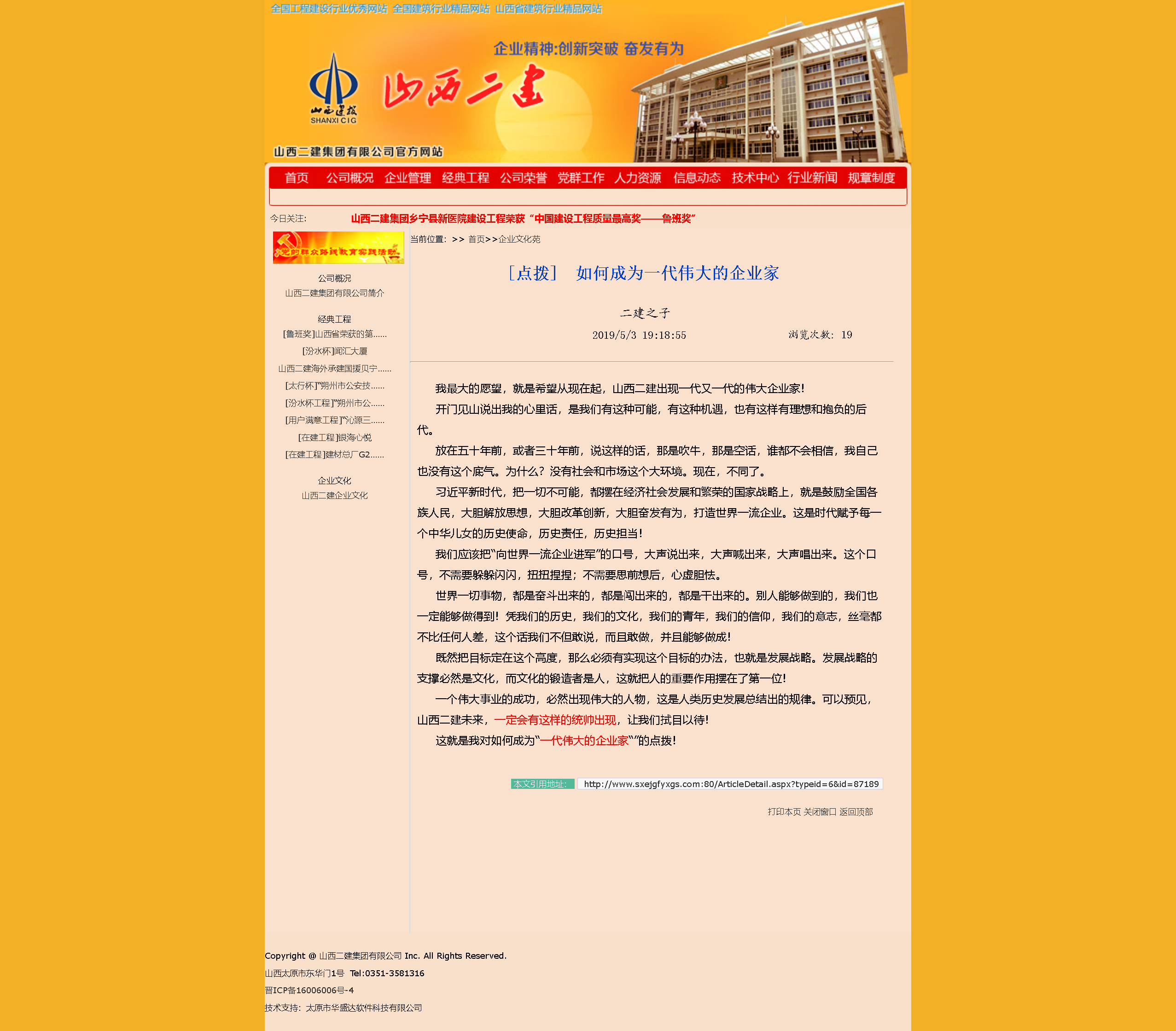 一个伟大事业的成功,必然出现伟大的人物,这是人类历史的规律。可以预见,山西二建未来,一定会有这样的统帅出现,让我们拭目以待!