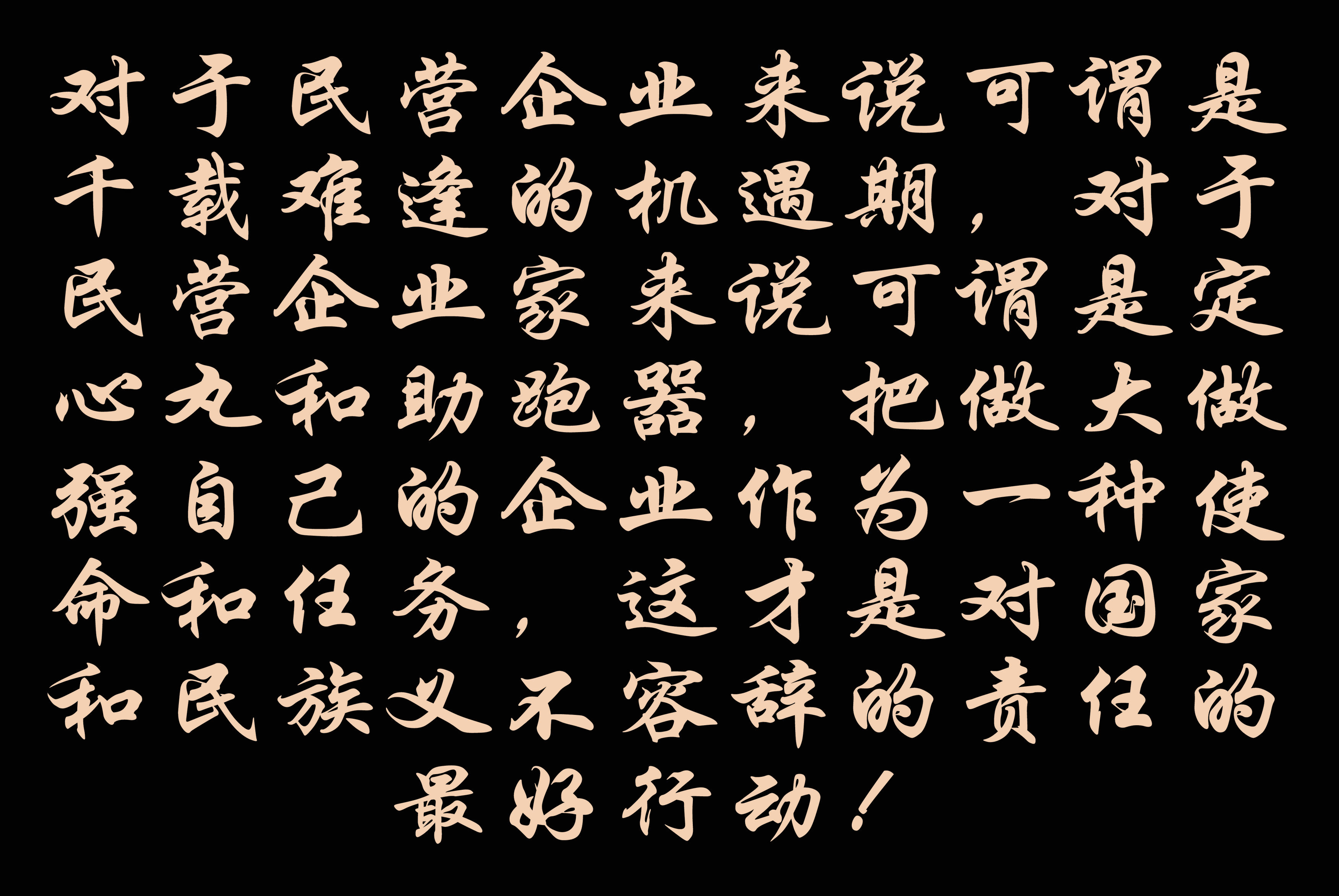国家发改委等8部门刚刚发布的《关于实施促进民营经济发展近期若干举措的通知》28条利好政策,可谓是全方位360度为民营经济发展壮大提供全方位支持的力度,对于民营企业来说可谓是千载难逢的机遇期,对于民营企业家来说可谓是定心丸和助跑器,把做大做强自己的企业作为一种使命和任务,这才是对国家和民族义不容辞的责任的最好行动!