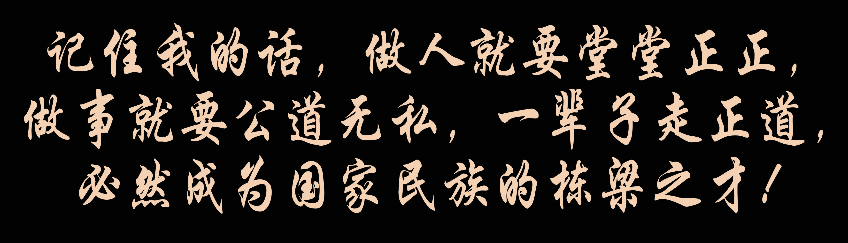 记住我的话,做人就要堂堂正正,做事就要公道无私,一辈子走正道,必然成为国家民族的栋梁之才!