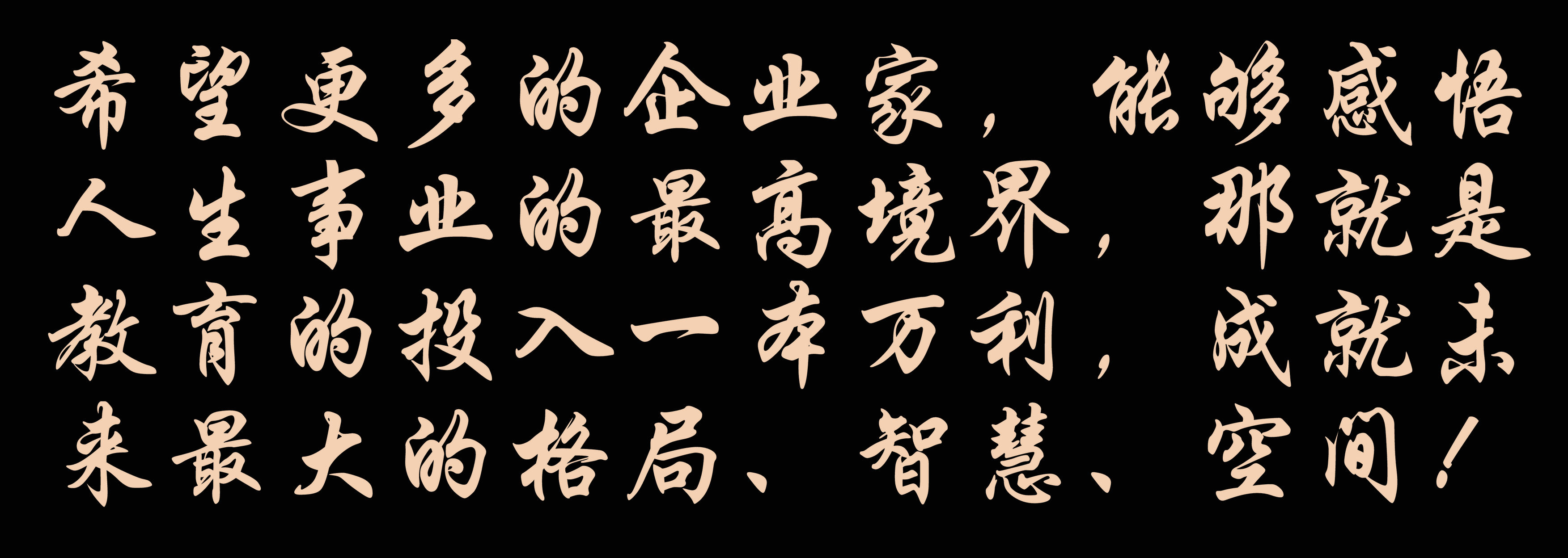 希望更多的企业家,能够感悟人生事业的最高境界,那就是教育的投入一本万利,成就未来最大的格局、智慧、空间!