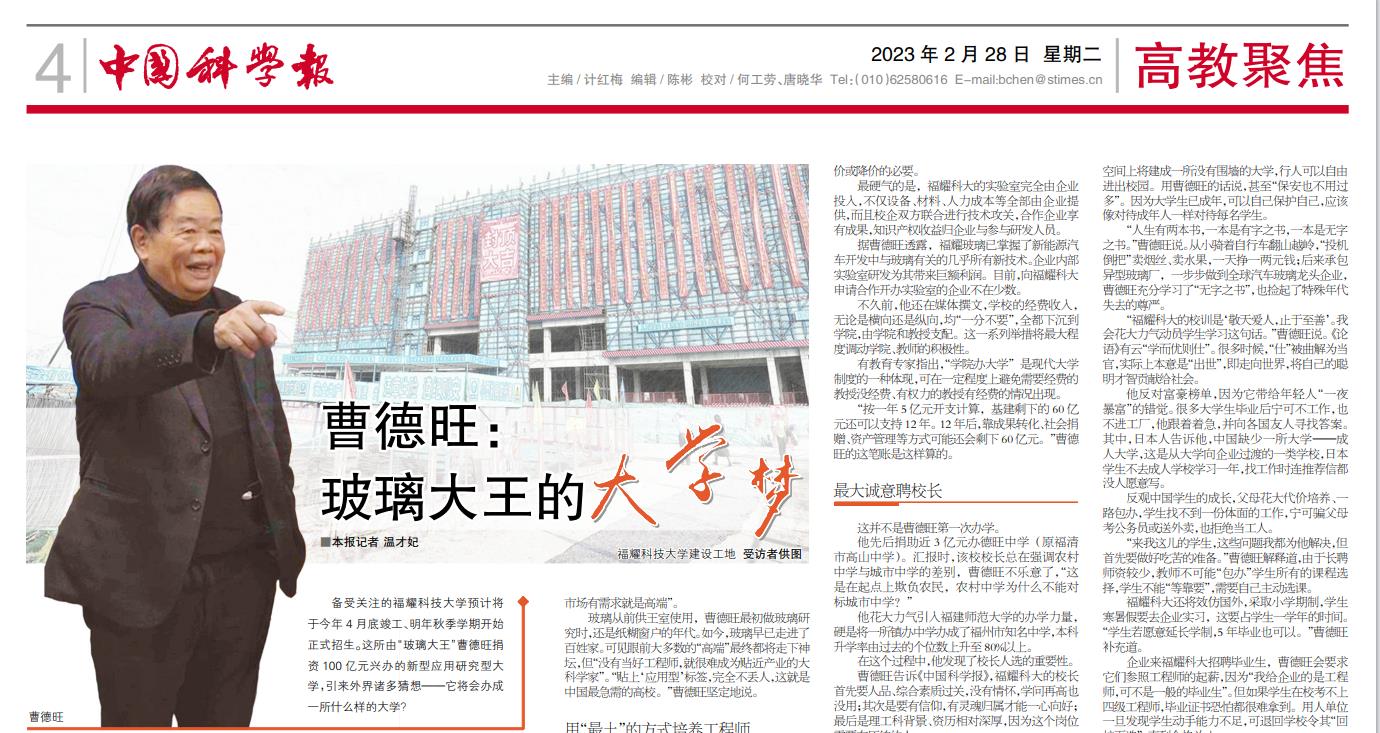 曹德旺此前在央视财经访谈节目上表示,“因为我没有上过大学,很仰慕大学。最早我们只是向大学捐赠。南京大学、厦门大学、福建师范大学...很多大学都接受过我的捐赠。他们也都很鼓励我办大学,现在我准备专心做福耀科技大学。”