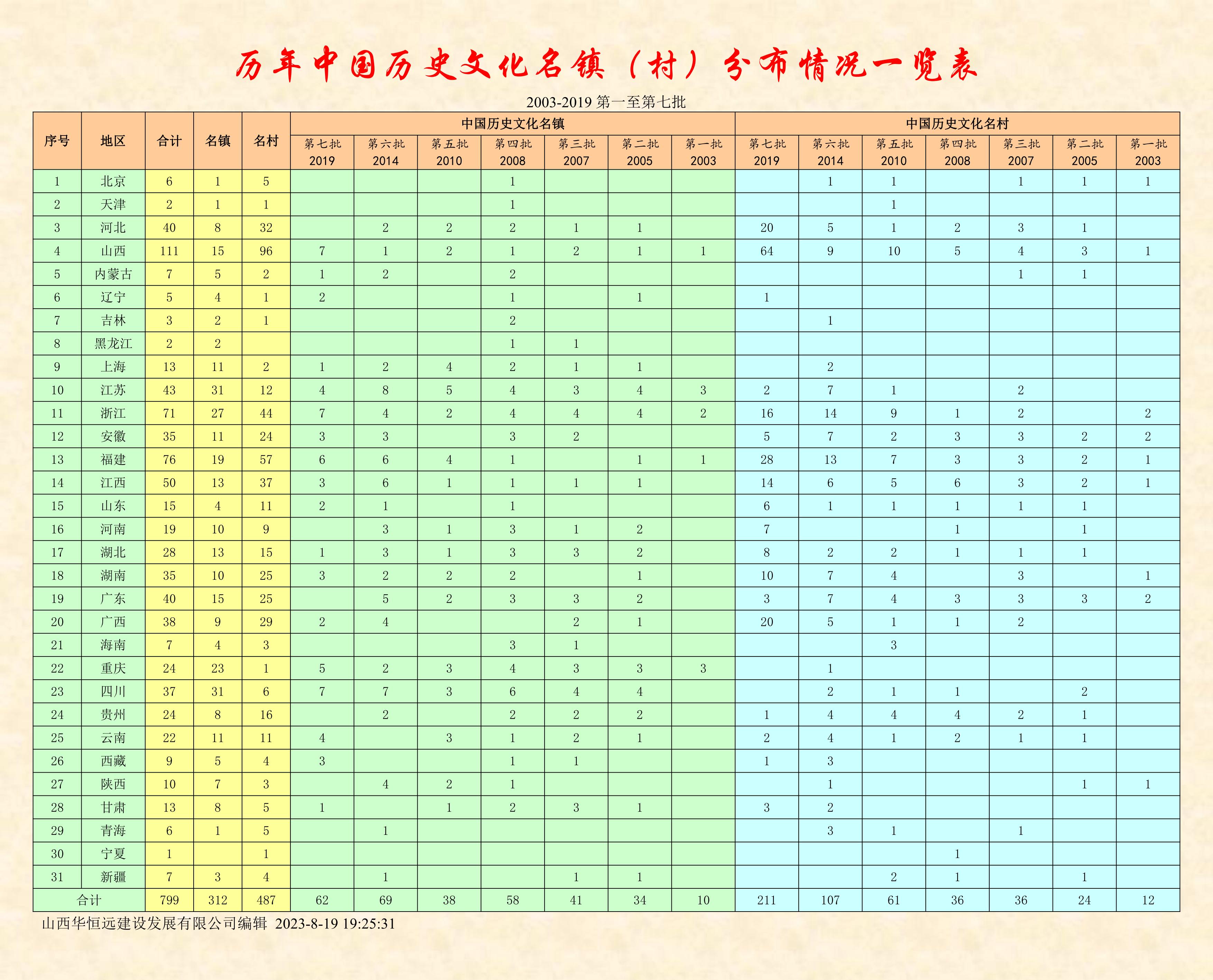 下午,完成了《全国历史文化名镇(村)名录》的分布情况一览表,山西省以111个名镇名村,位居第一名!