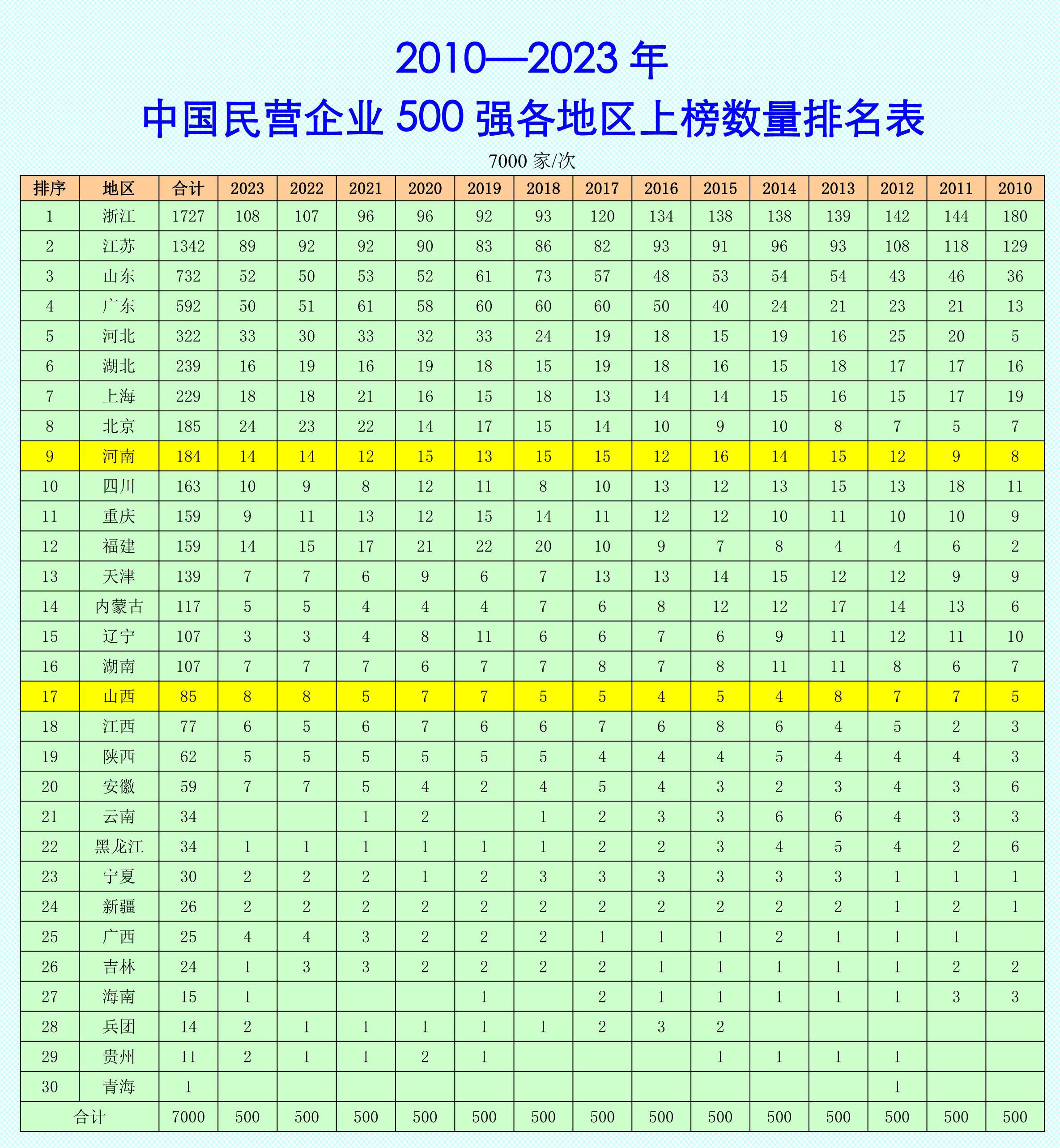 【行业资料】2010—2023年中国民营企业500强排行榜