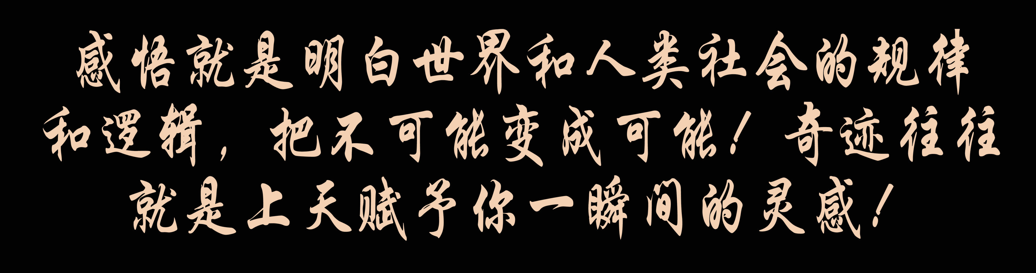 感悟就是明白世界和人类社会的规律和逻辑,把不可能变成可能!奇迹往往就是上天赋予你一瞬间的灵感! 这是我一个轮回六十年最大的感悟,感应和灵感!