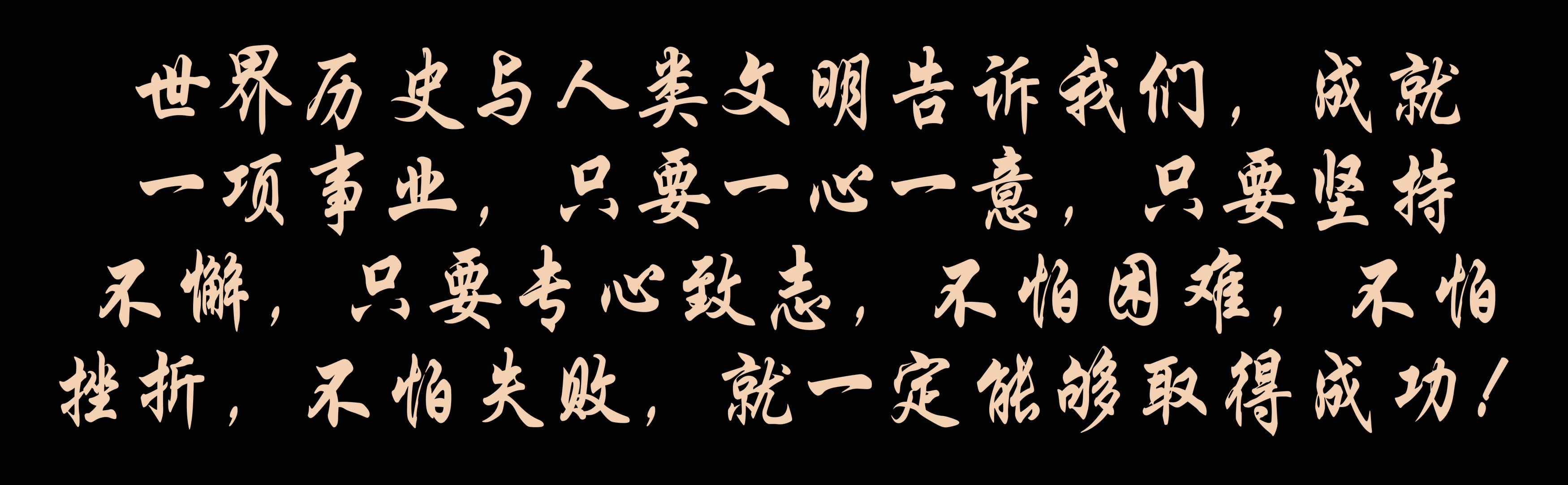 世界历史与人类文明告诉我们,成就一项事业,只要一心一意,只要坚持不懈,只要专心致志,不怕困难,不怕挫折,不怕失败,就一定能够取得成功!