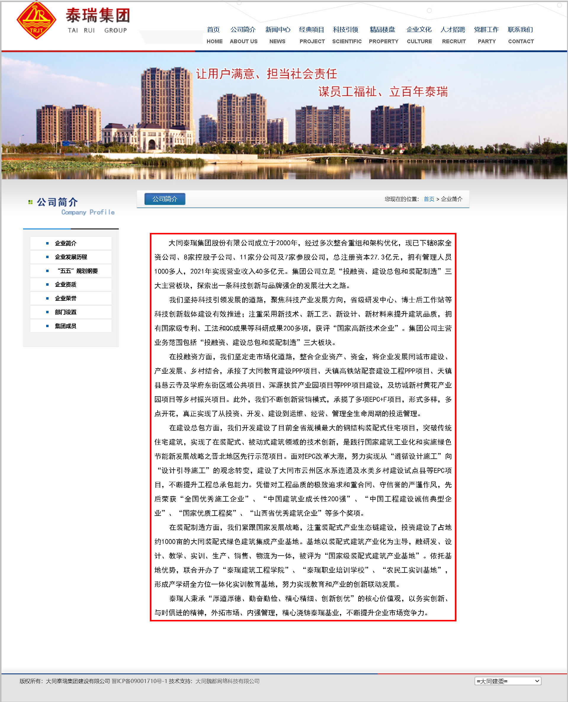 大同泰瑞集团建设有限公司,经过二十三年的拼搏奋斗,终于如愿以偿进入了全国建筑行业高端行列,成为特级资质的大企业、大集团、大公司!