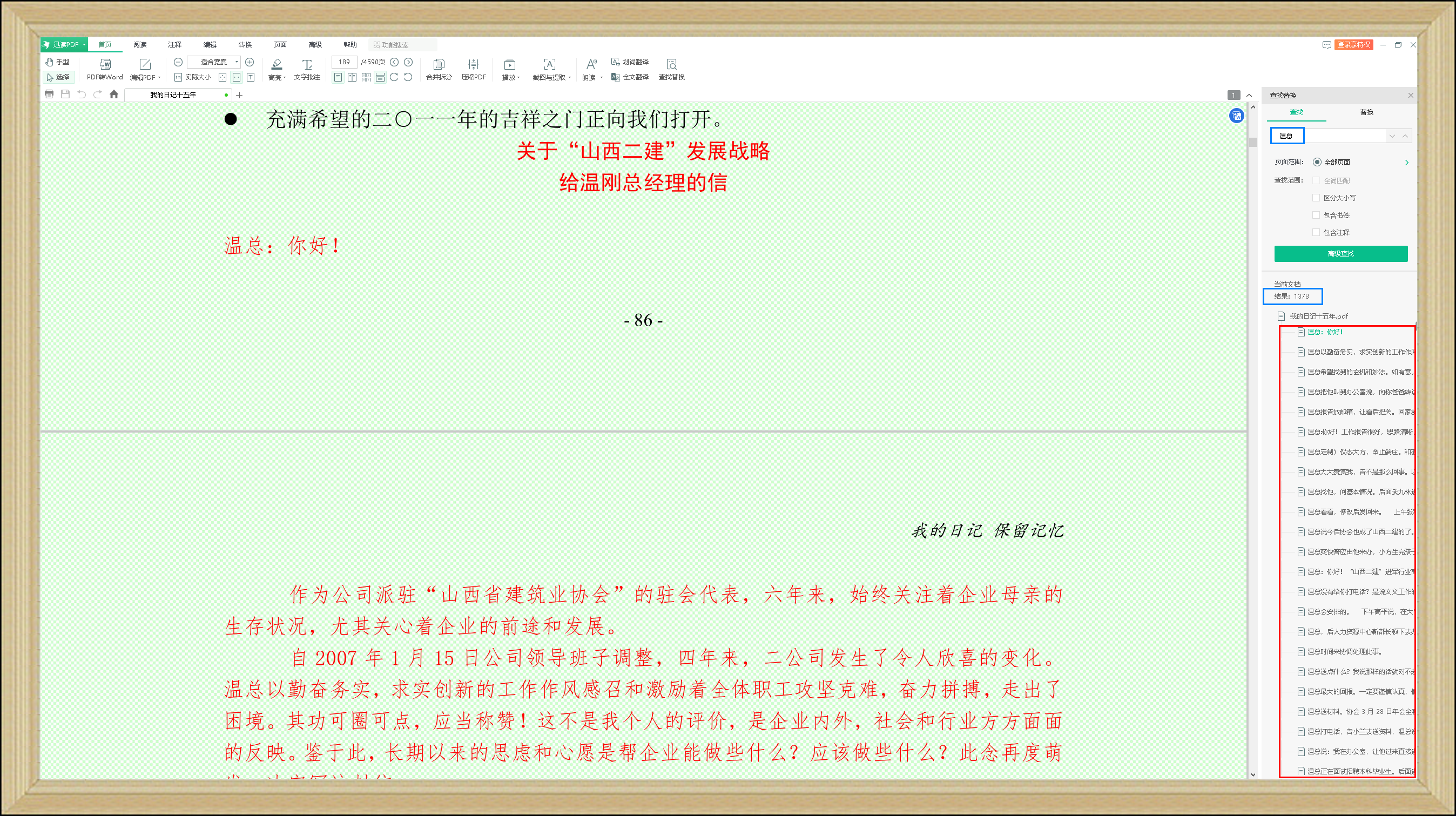 自2007年1月15日公司领导班子调整,四年来,二公司发生了令人欣喜的变化。温总以勤奋务实,求实创新的工作作风感召和激励着全体职工攻坚克难,奋力拼搏,走出了困境。其功可圈可点,应当称赞!这不是我个人的评价,是企业内外,社会和行业方方面面的反映。鉴于此,长期以来的思虑和心愿是帮企业能做些什么?应该做些什么?此念再度萌发,决定写这封信。