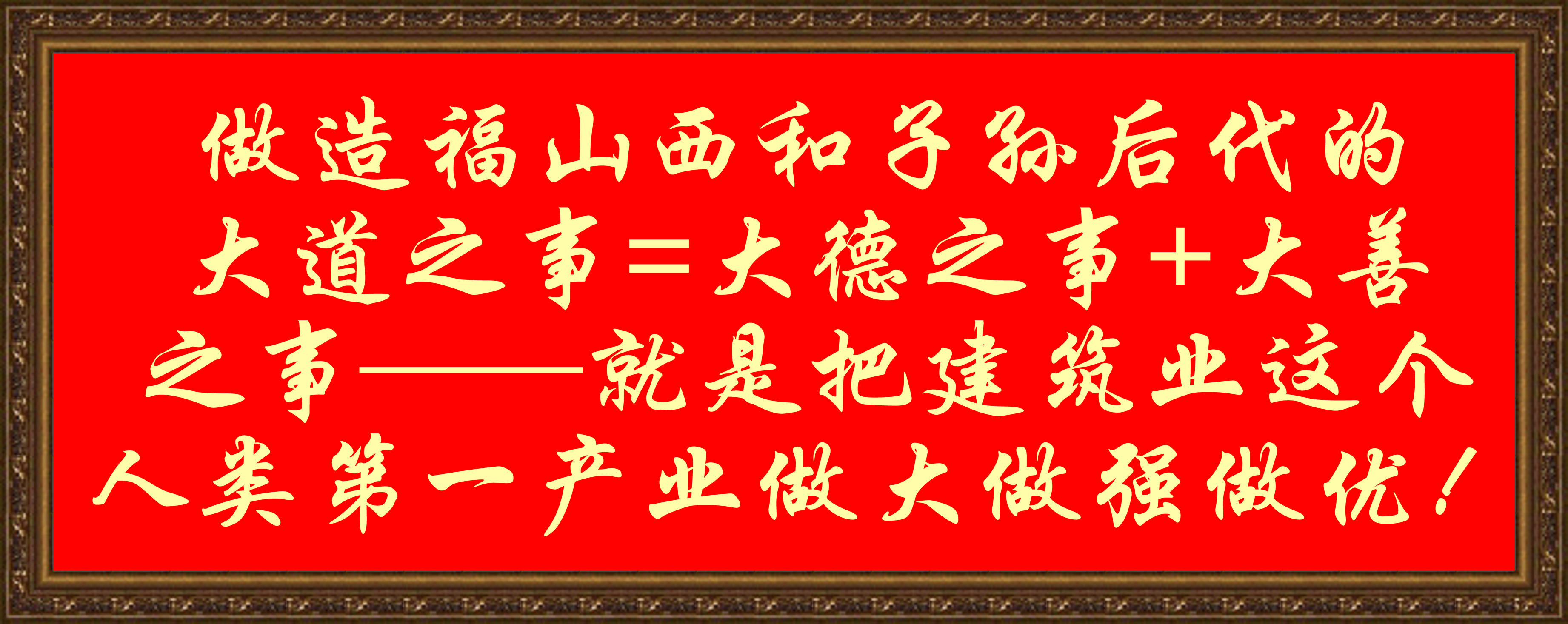 这是一个甲子轮回实践和感悟的感应与灵感。我的使命是什么呢?就是成就应该成就的人和事,这是上天赋予我的使命和责任。因此,时代变迁,社会进步,六十年的经历,教化与造化,做应该做的大事,做应该做的好事,做造福山西和子孙后代的大道之事=大德之事+大善之事——就是把建筑业这个人类第一产业做大做强做优!