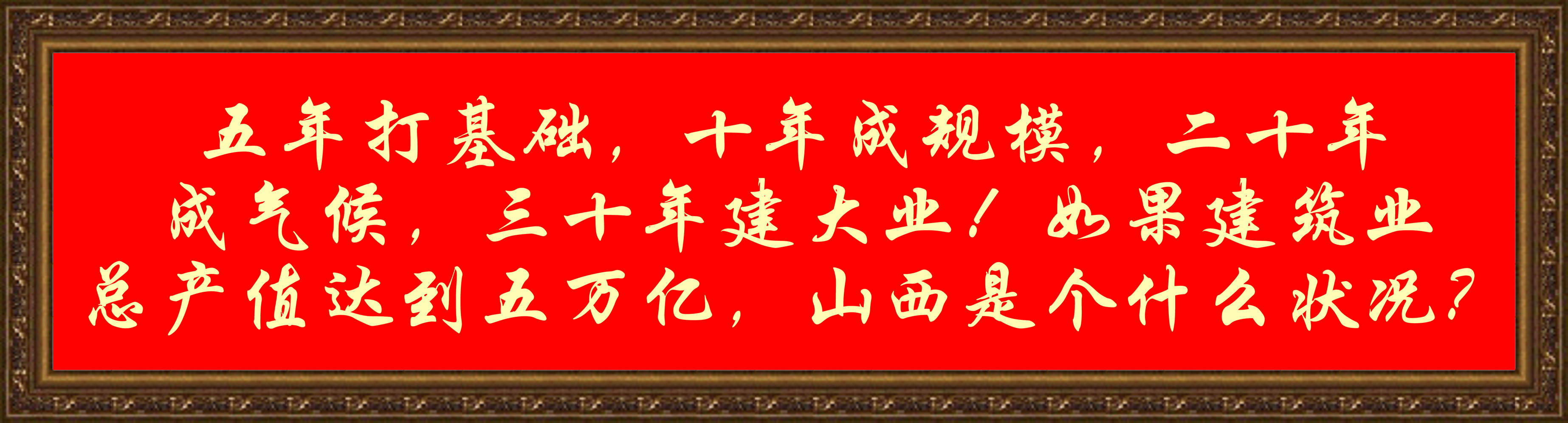 从这个理念和思维决定未来山西经济和社会发展大略,应该也必须把建筑业作为兴晋富民的朝阳产业,统筹谋划,振兴为要,落实到位。五年打基础,十年成规模,二十年成气候,三十年建大业!如果建筑业总产值达到五万亿,山西是个什么状况?