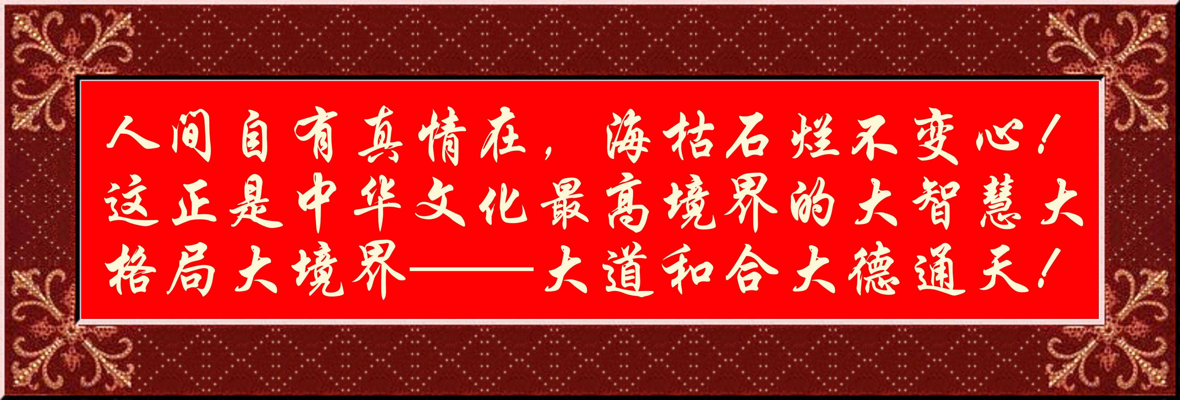 人间自有真情在,海枯石烂不变心!这正是中华文化最高境界的大智慧大格局大境界——大道和合大德通天!