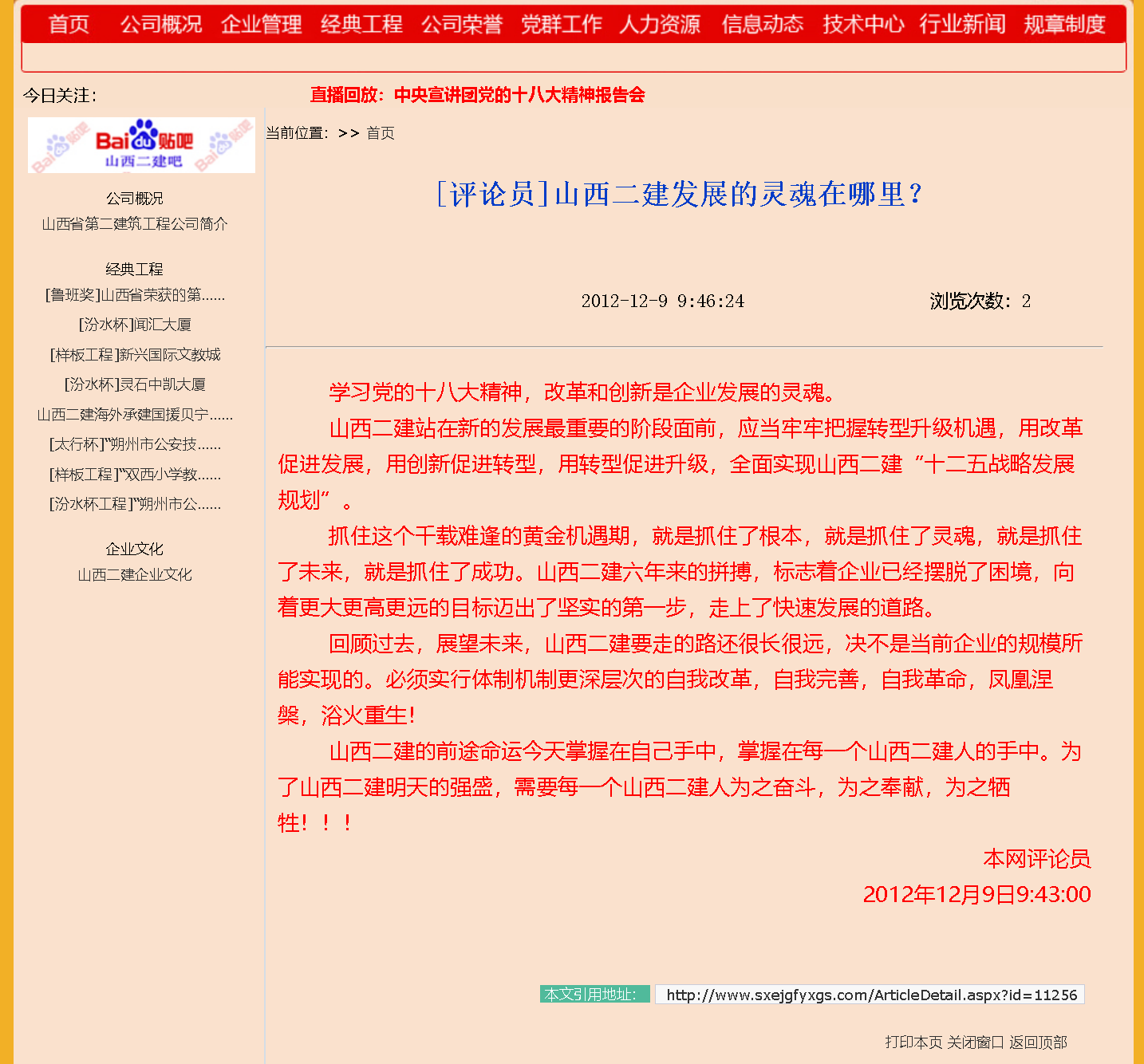这是十二年前我对山西二建未来发展的三百字文章。