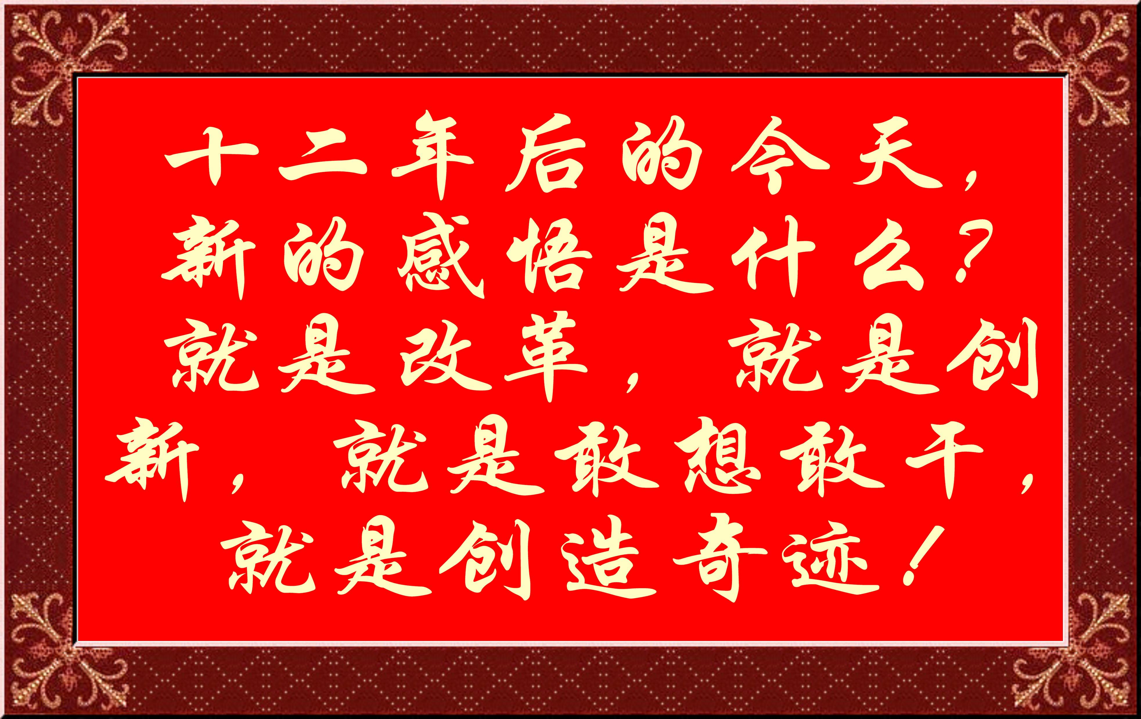 十二年后的今天,新的感悟是什么?就是改革,就是创新,就是敢想敢干,就是创造奇迹!