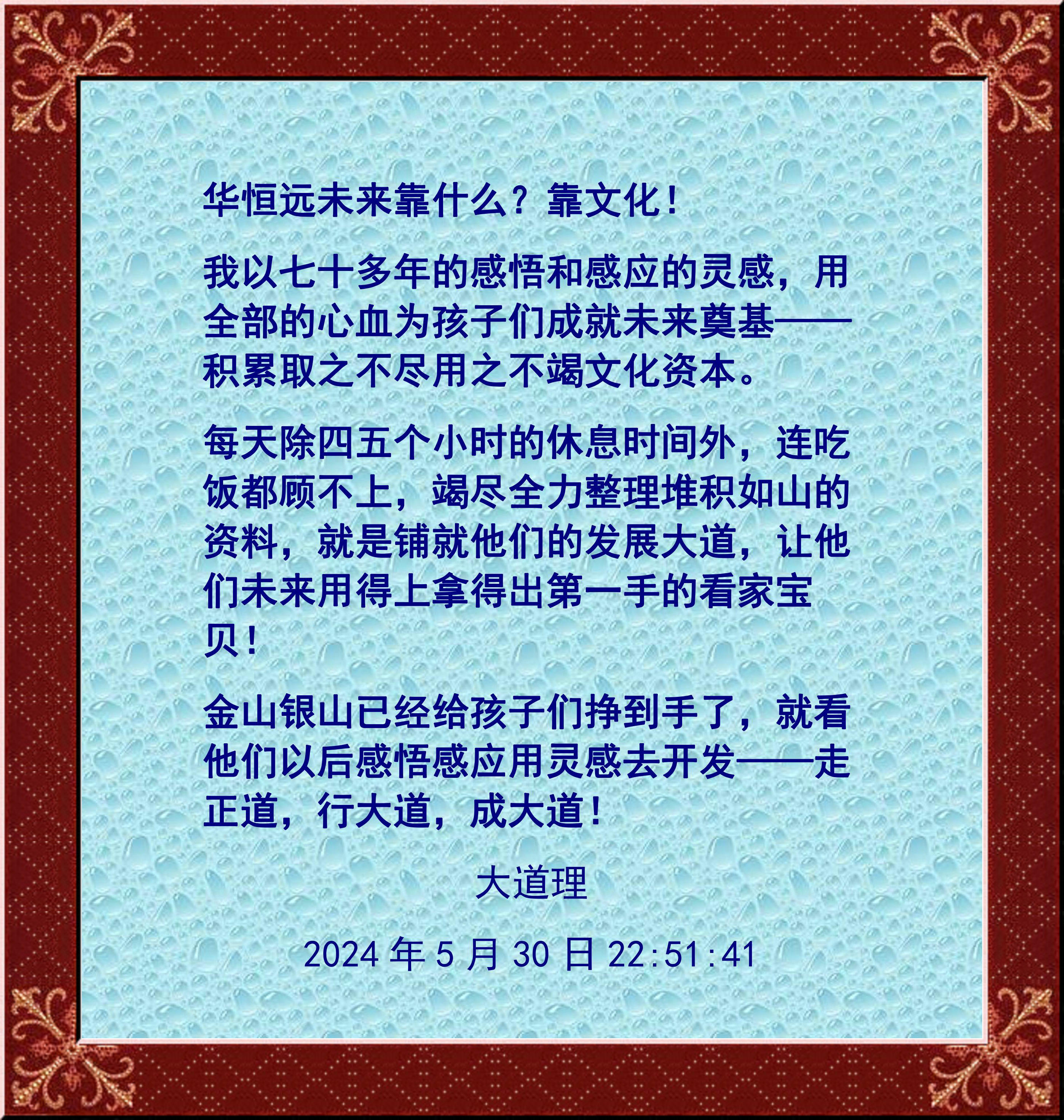金山银山已经给孩子们挣到手了,就看他们以后感悟感应用灵感去开发——走正道,行大道,成大道!