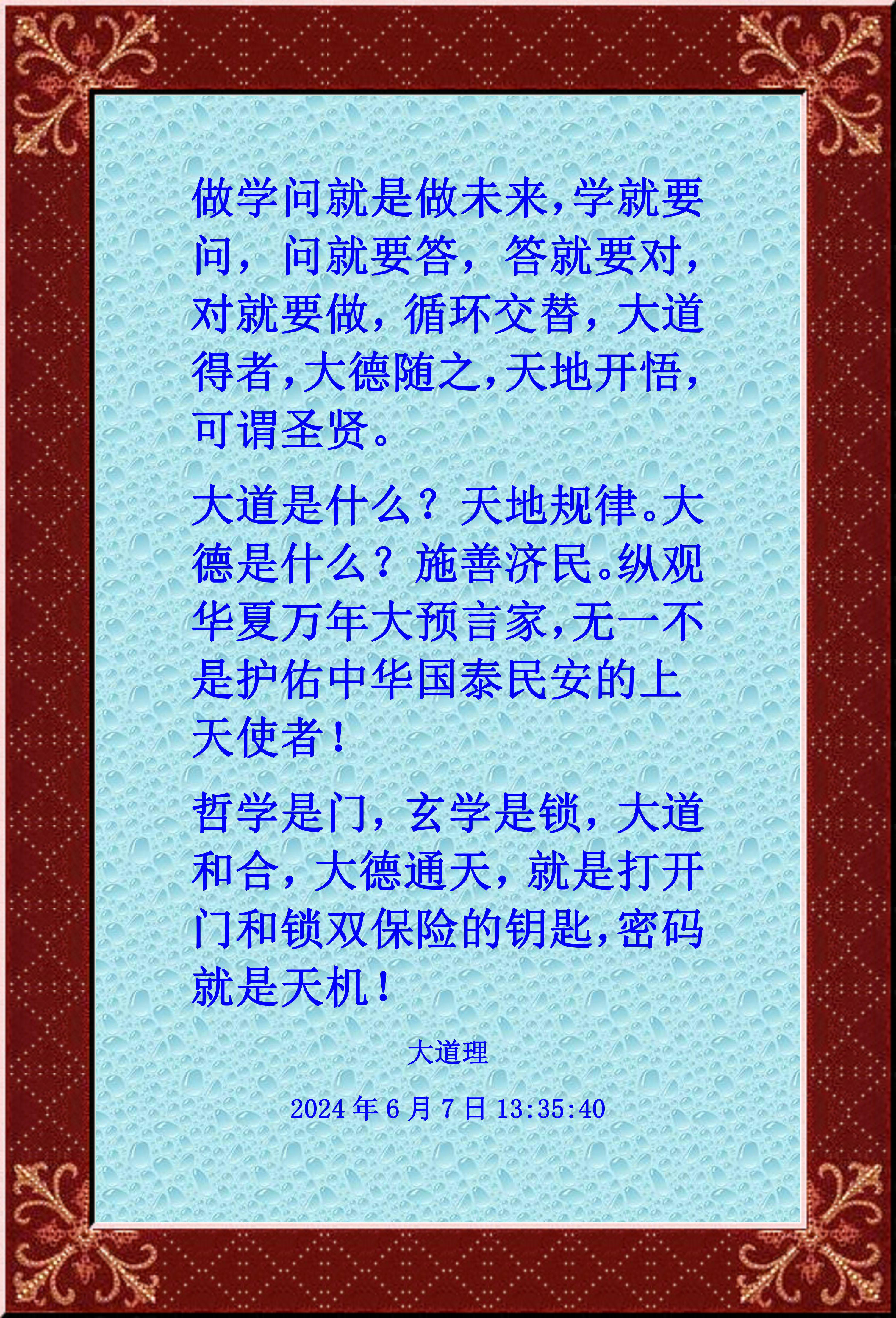 哲学是门,玄学是锁,大道和合,大德通天,就是打开门和锁双保险的钥匙,密码就是天机!