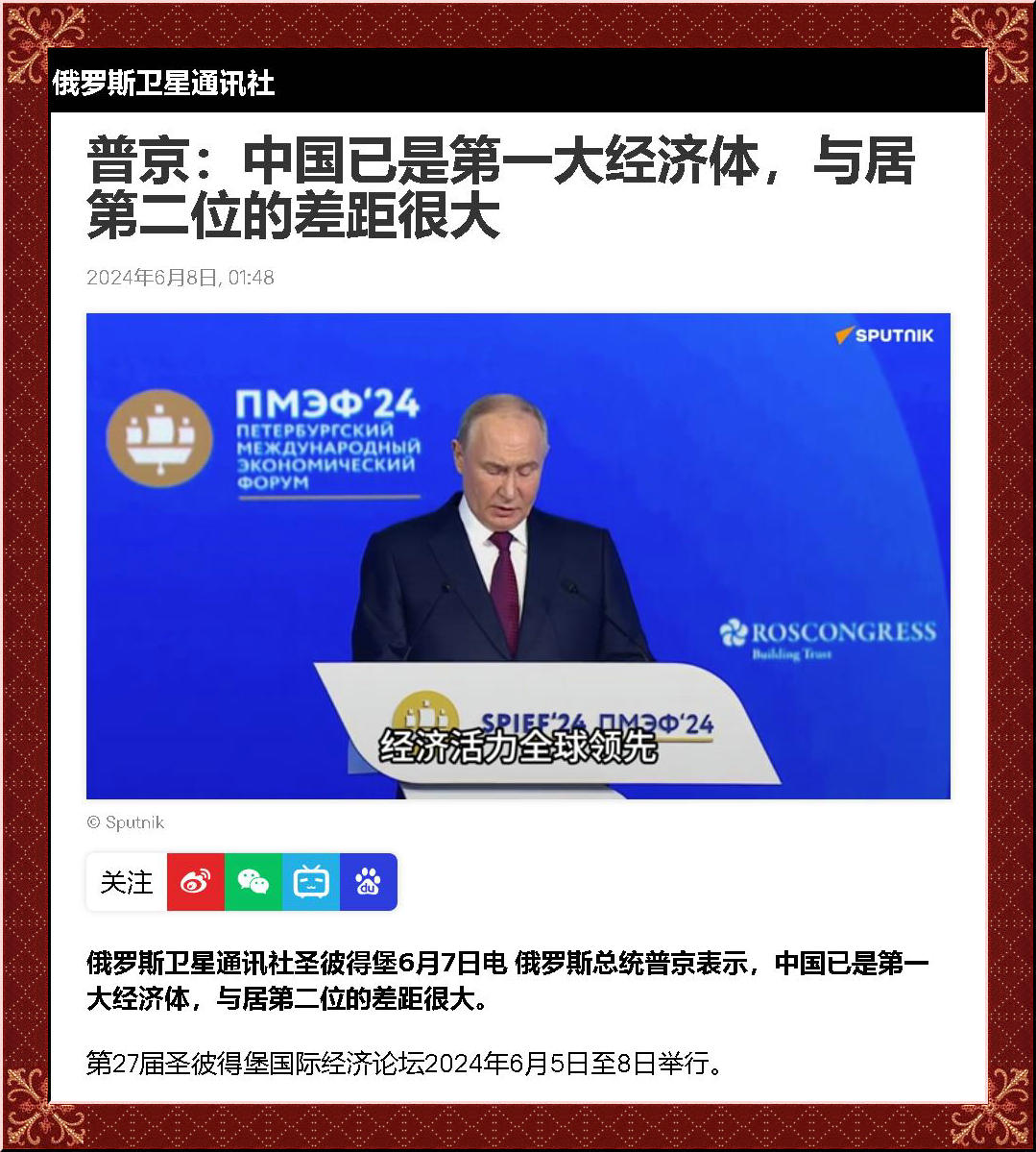 【学习园地】普京:中国已是第一大经济体,与居第二位的差距很大