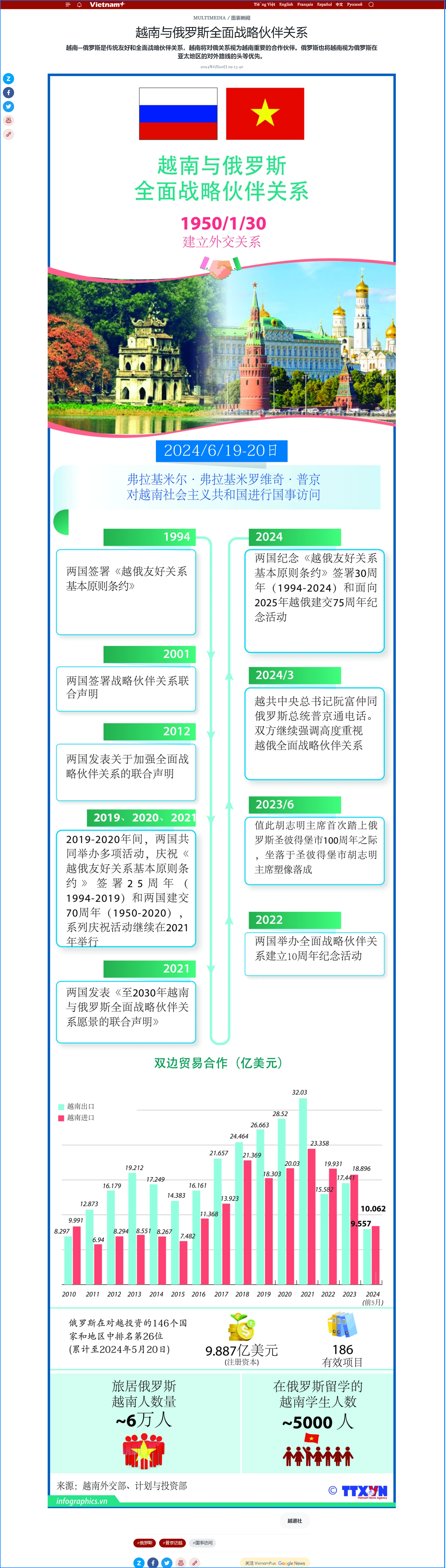 越南始终铭记俄罗斯人民为越南争取独立斗争提供的无私帮助和支持