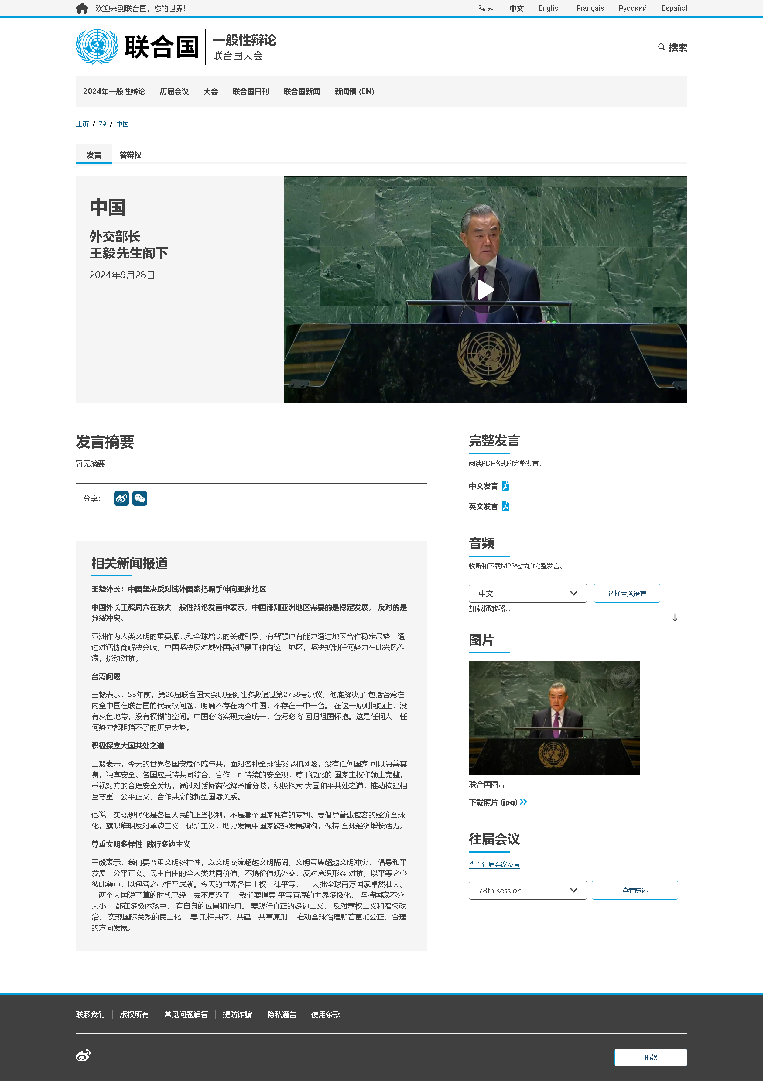 本届联大一般性辩论9月24日开幕,主题为“不让任何一个人掉队:携手同行,共促和平、可持续发展与人类尊严,造福今世后代”。22日至23日,联合国召开未来峰会,通过《未来契约》及其附件《全球数字契约》和《子孙后代宣言》,旨在改革国际治理体系,振兴多边主义,以更好应对新时代所面临的诸多挑战。联大一般性辩论期间,还召开了海平面上升高级别会议、抗微生物药物耐药性高级别会议、“彻底消除核武器国际日”高级别会议等。