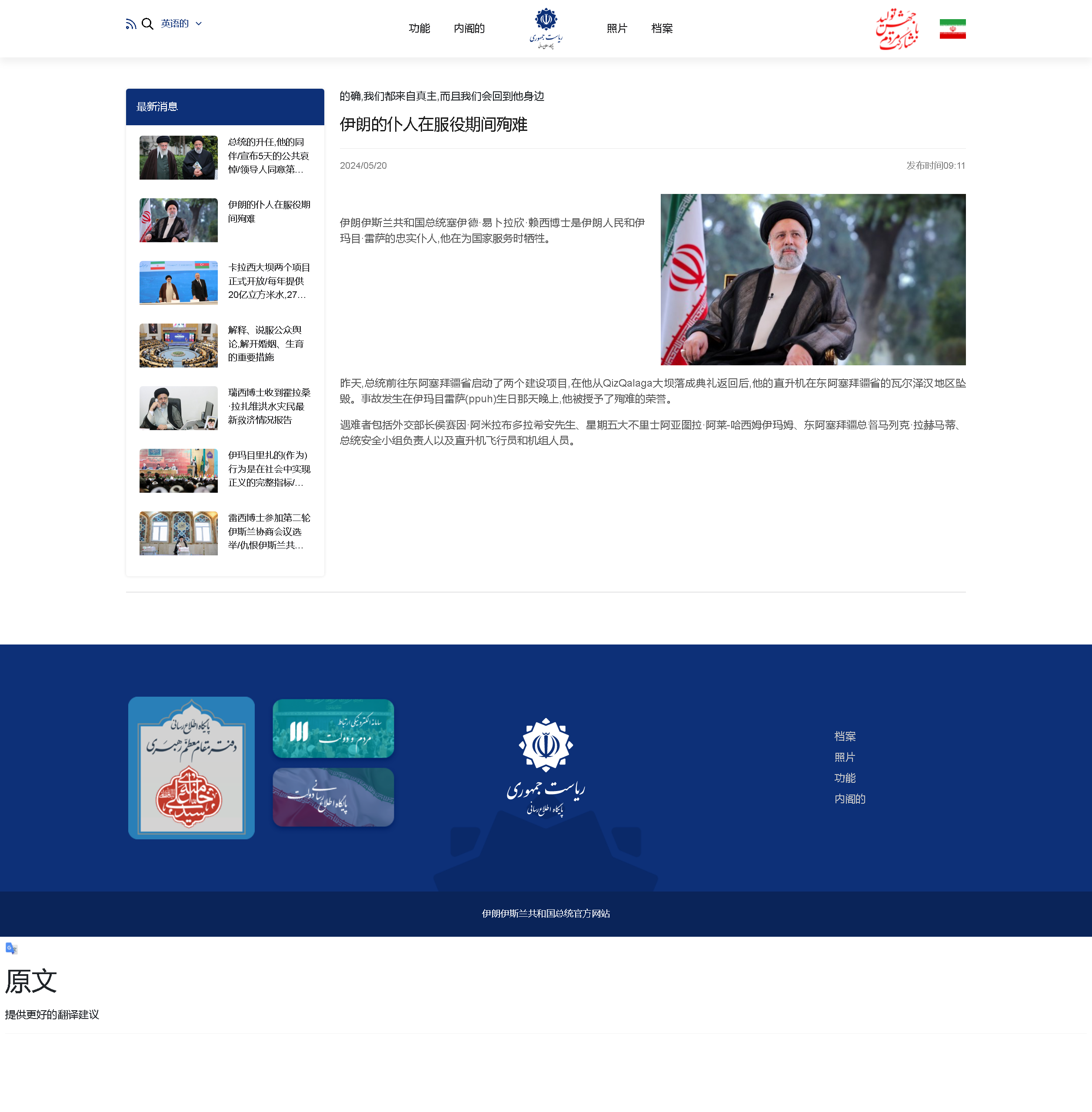 外交部发言人就伊朗总统莱希遇难答记者问 伊朗政府表示在总统遇难后将不受干扰继续运行 事发经过 专题