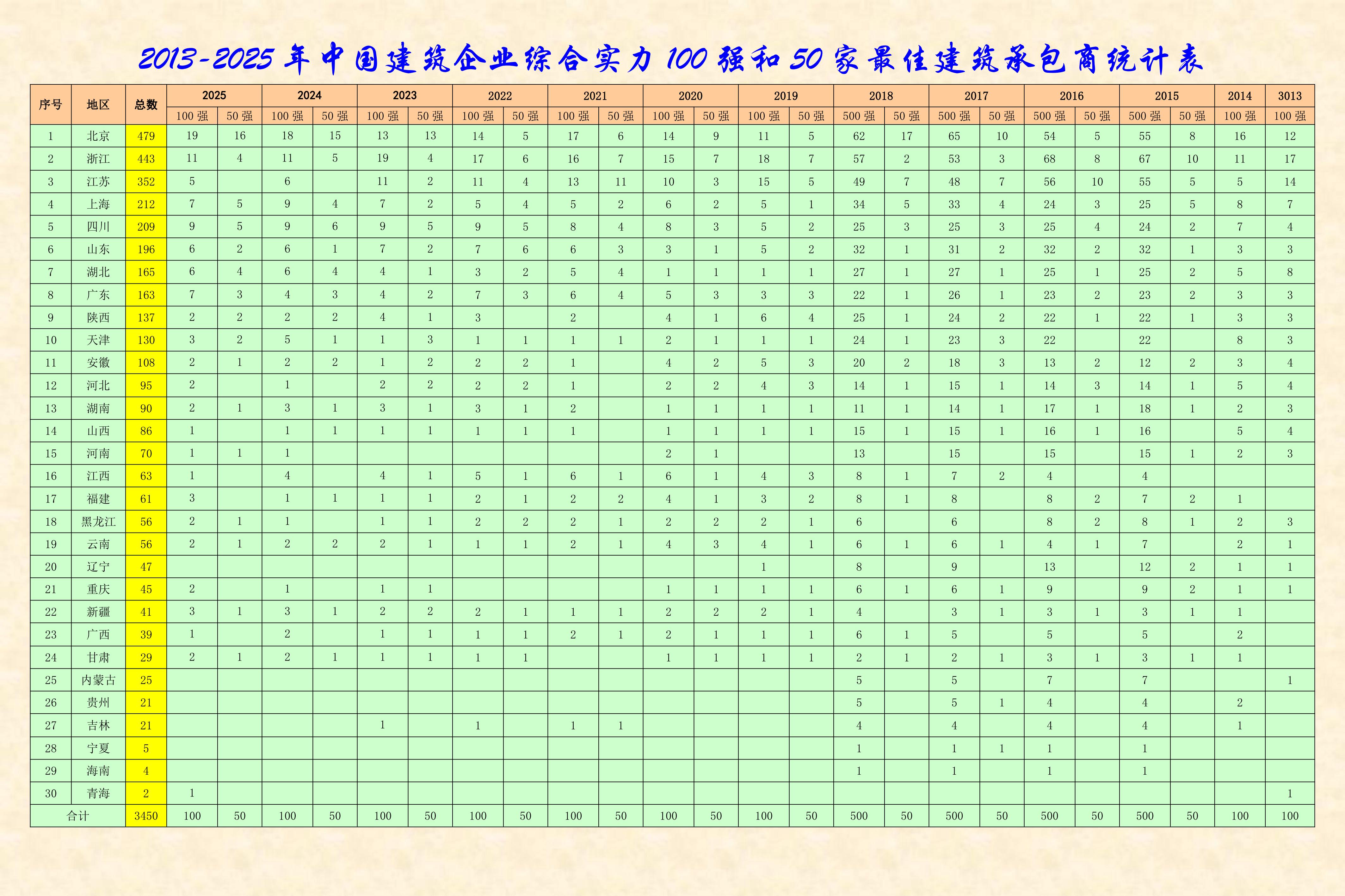 近日,备受瞩目的2025年中国建筑业综合实力100强榜单正式揭晓。这一榜单的发布,不仅为行业提供了极具价值的参考,更是集中展示了我国建筑业的整体实力与发展趋势。