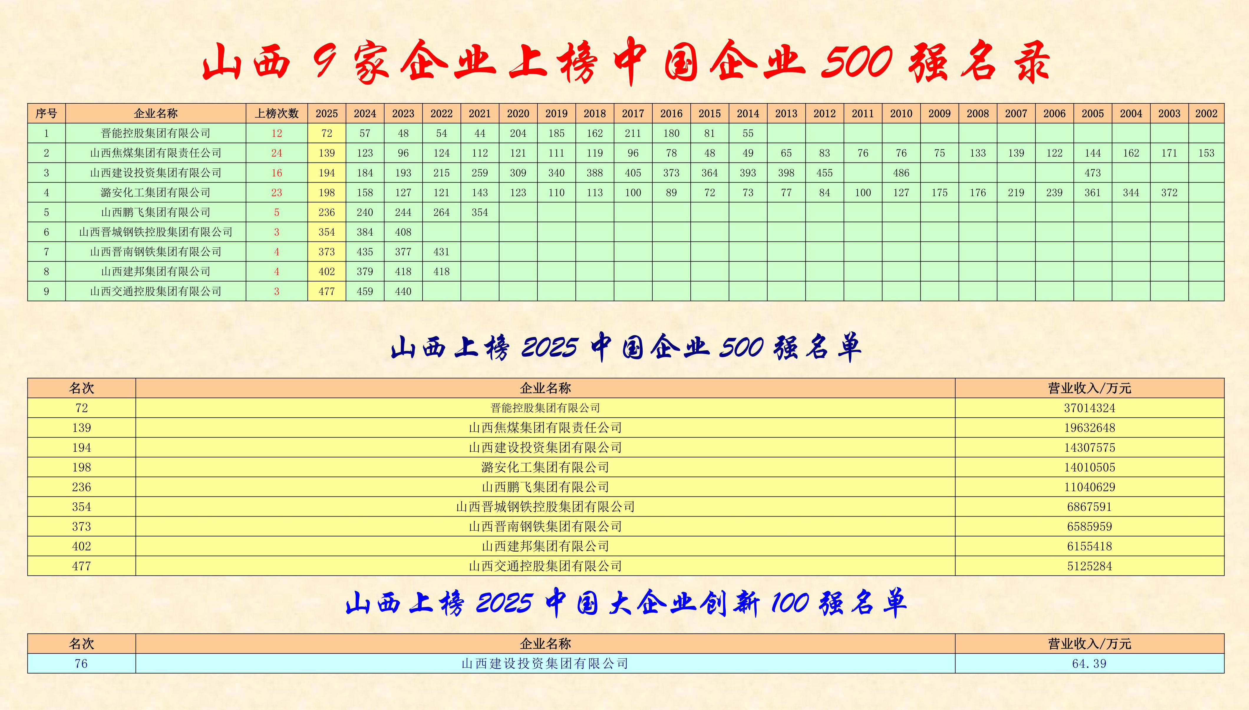 1 晋能控股集团有限公司 12 72 57 48 54 44 204 185 162 211 180 81 55