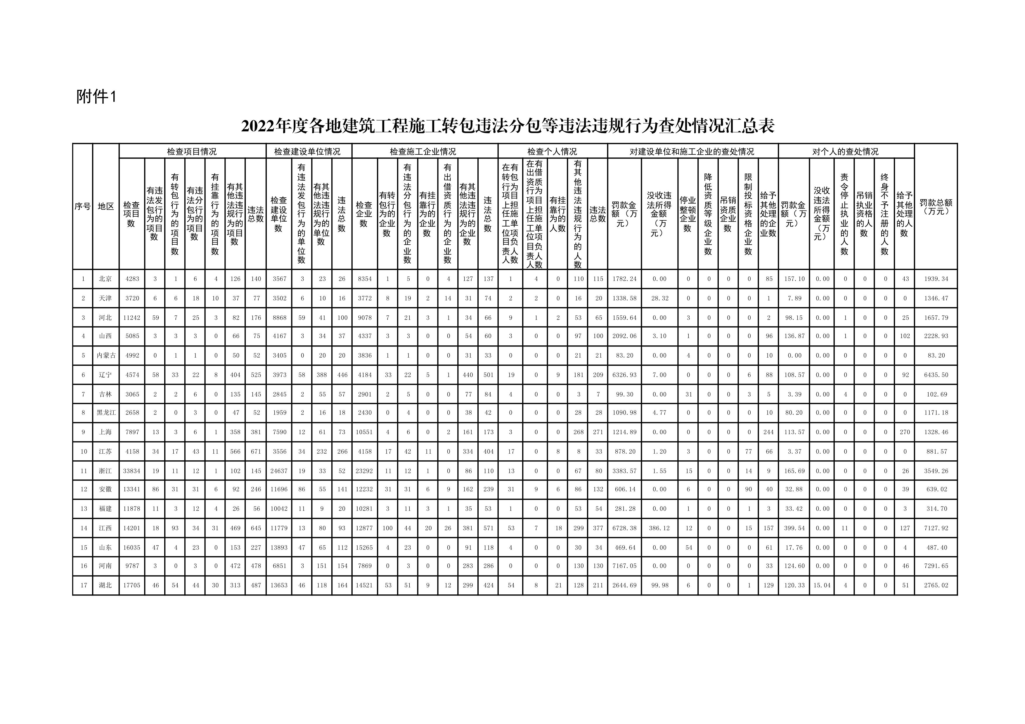 住房和城乡建设部近日通报2022年度各地住房和城乡建设主管部门对建筑工程施工转包违法分包等违法违规行为查处情况及住房和城乡建设部转各地建筑工程施工违法违规行为举报投诉案件查处情况。