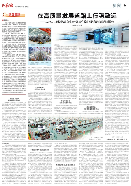 一张榜单,不仅可看到山西民营企业发展状态,还能管窥转型升级“路线图”。“营收百强中制造业仍占主导地位,无论是营业收入总额还是首位数、末位数,均远远高于其他产业发展水平。”陈旭忠表示,与以往比,山西百强民营企业制造业智能化、数字化、绿色化转型加快,服务业新领域新业态亮点纷呈,升级有序推进。