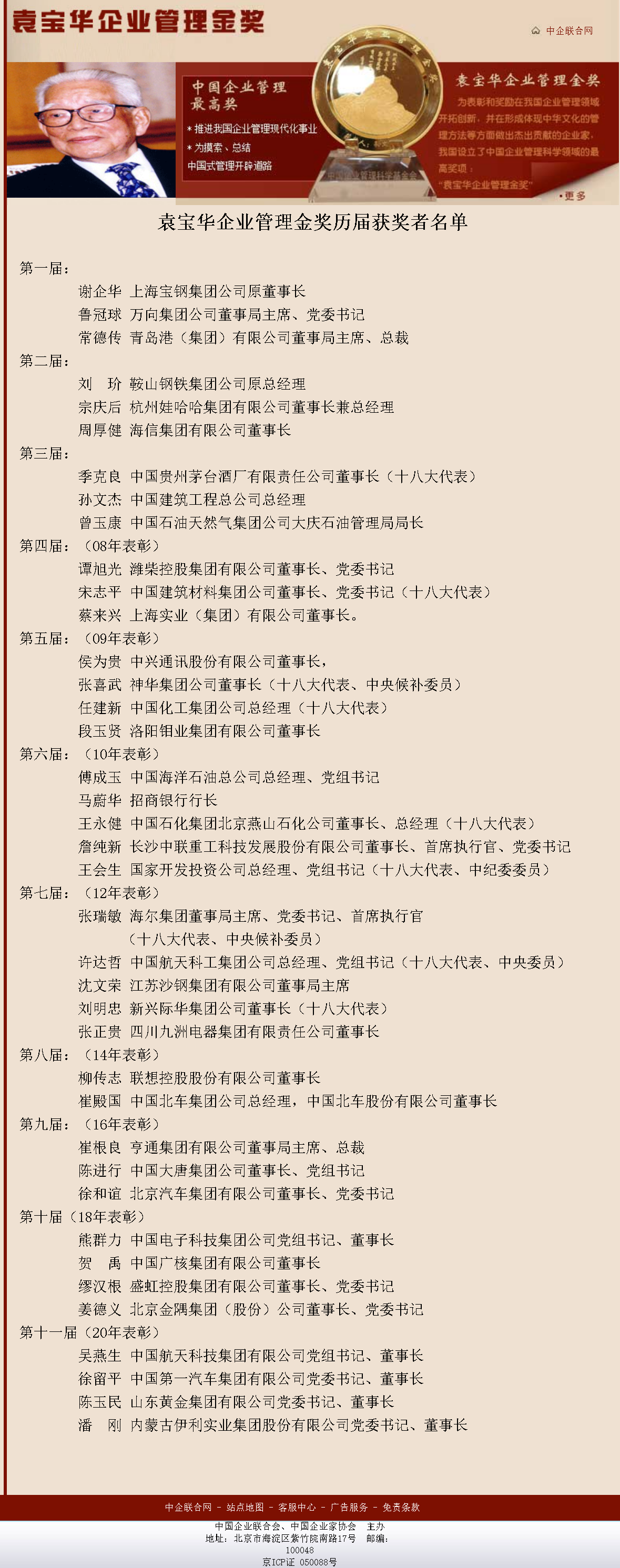 张瑞敏 海尔集团董事局主席、党委书记、首席执行官(十八大代表、中央候补委员)